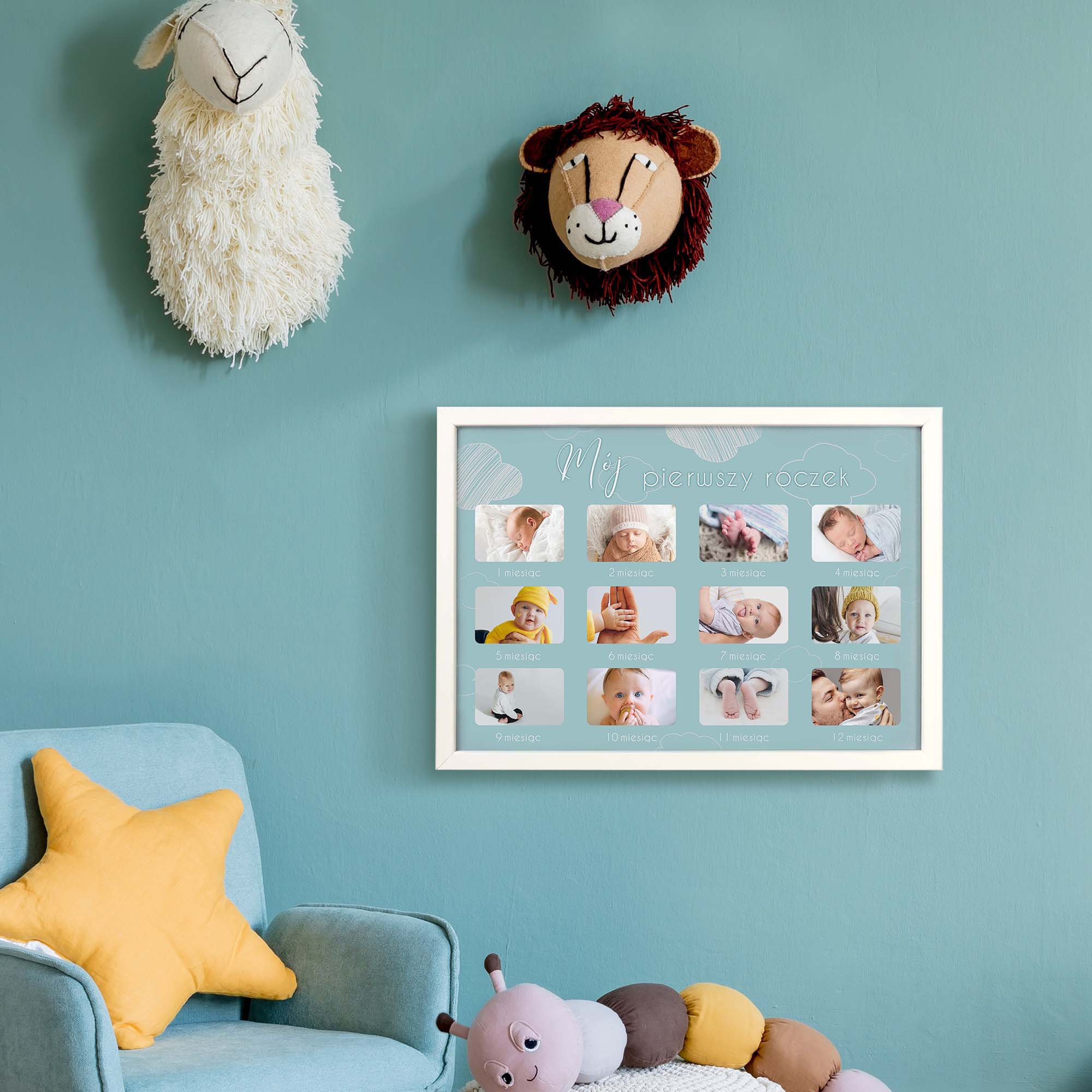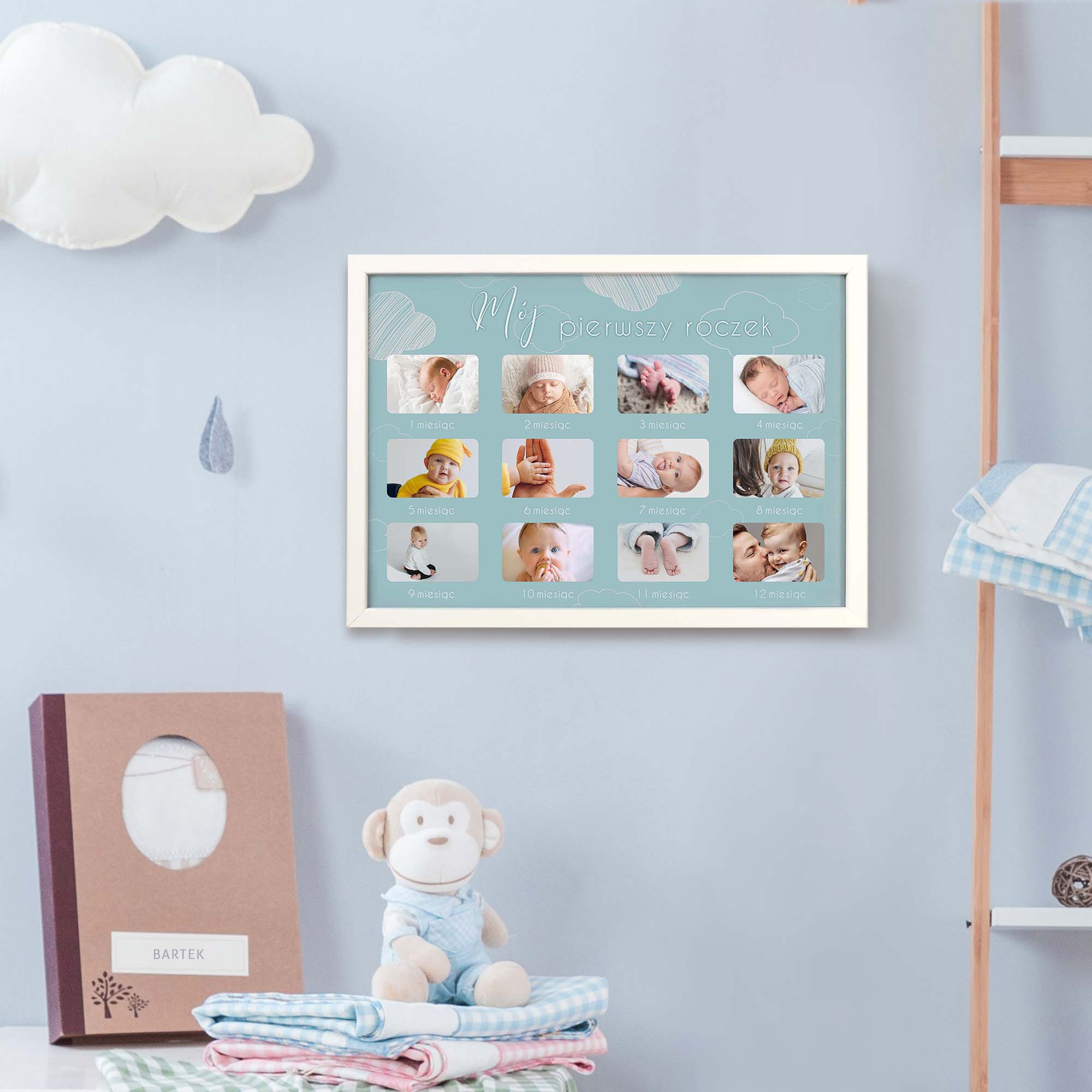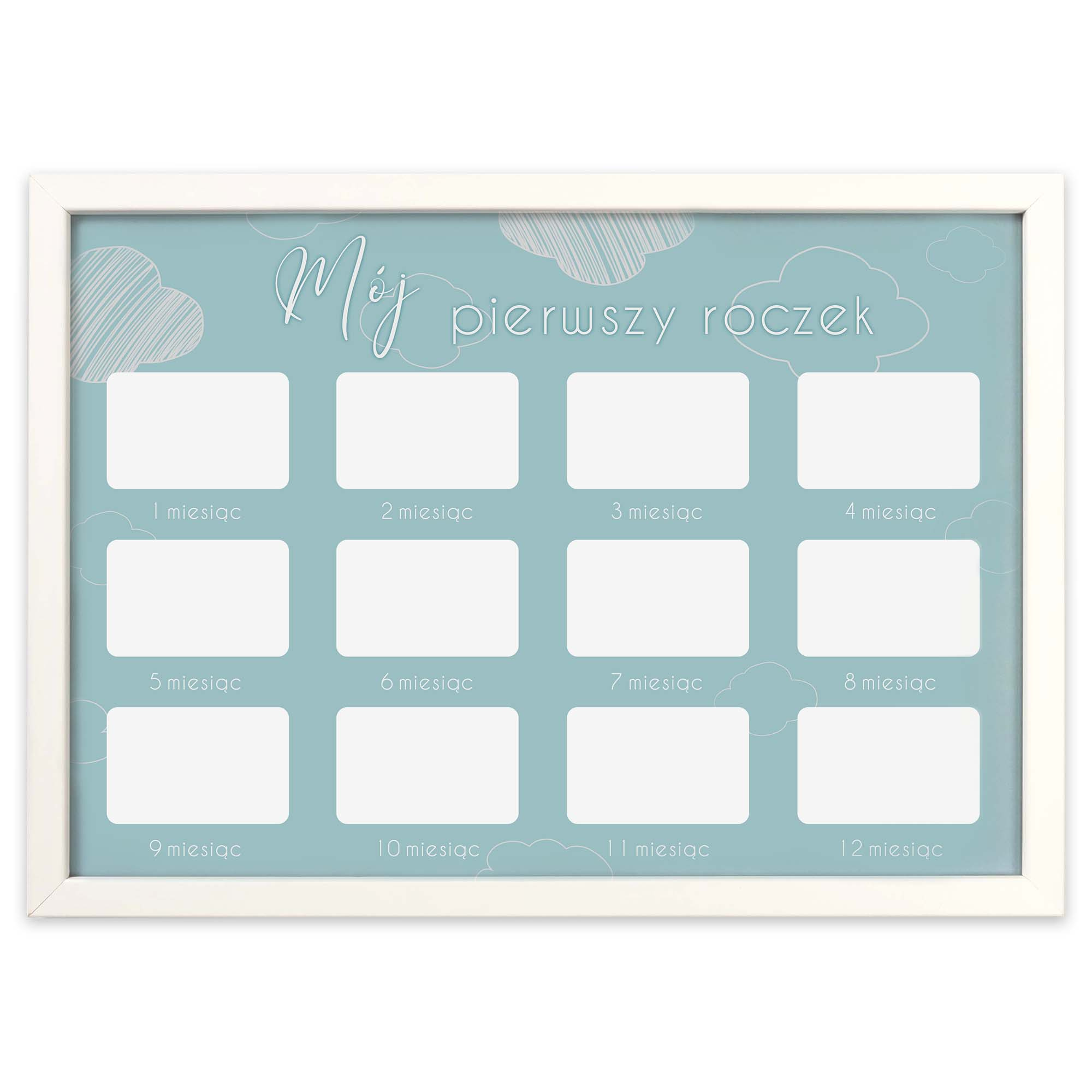 Ramka drewniana do pokoju dziecięcego o rozmiarze 21x30 cm. Multirama kalendarz MójPierwszy Roczek.