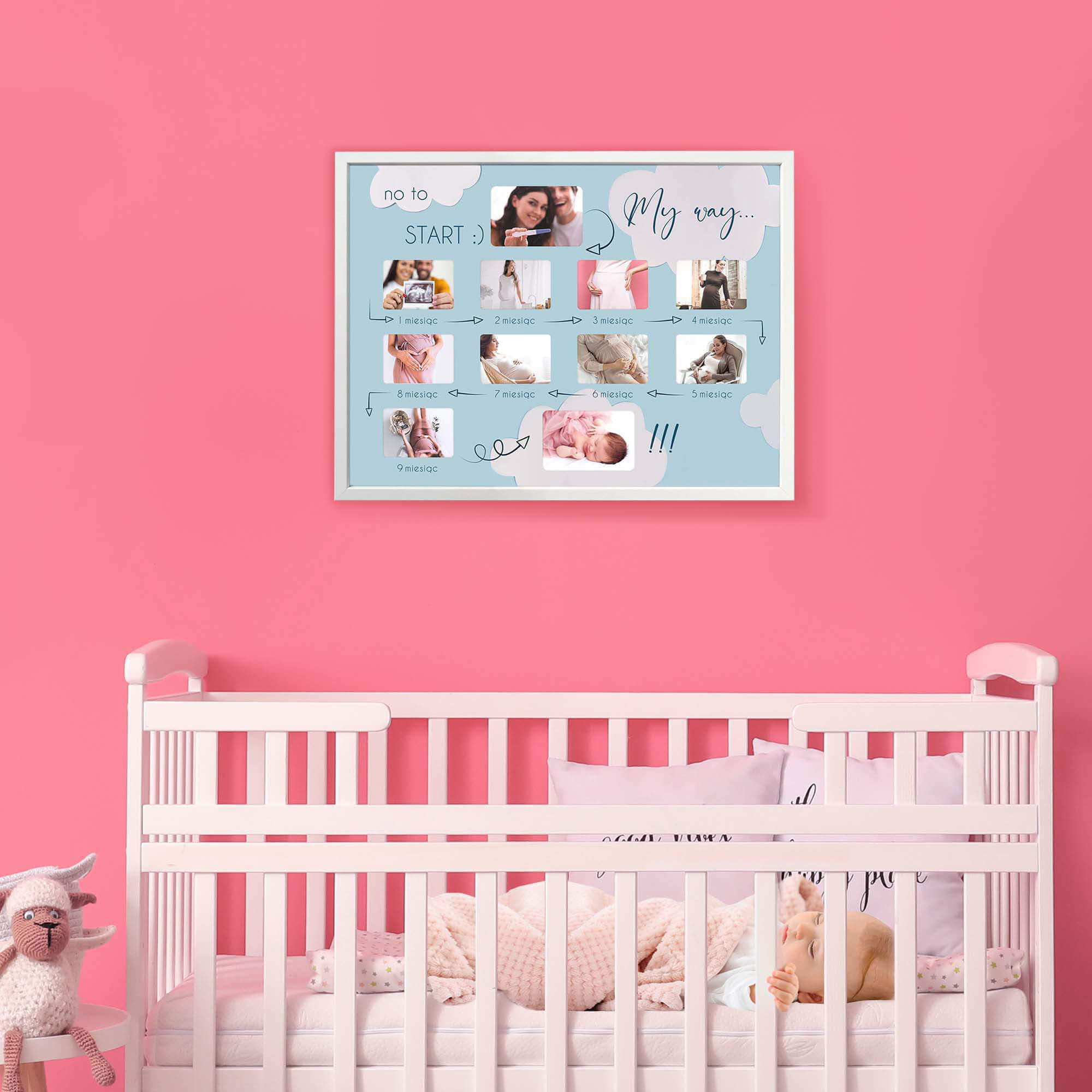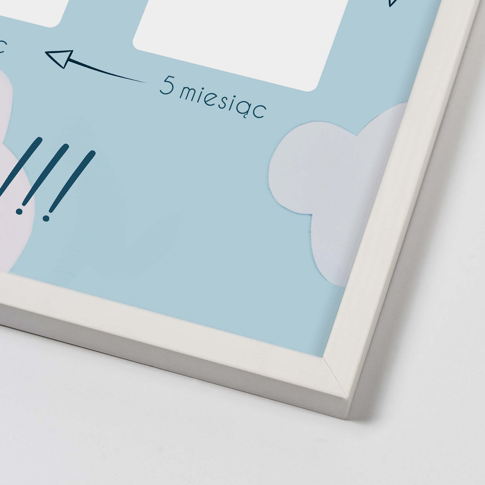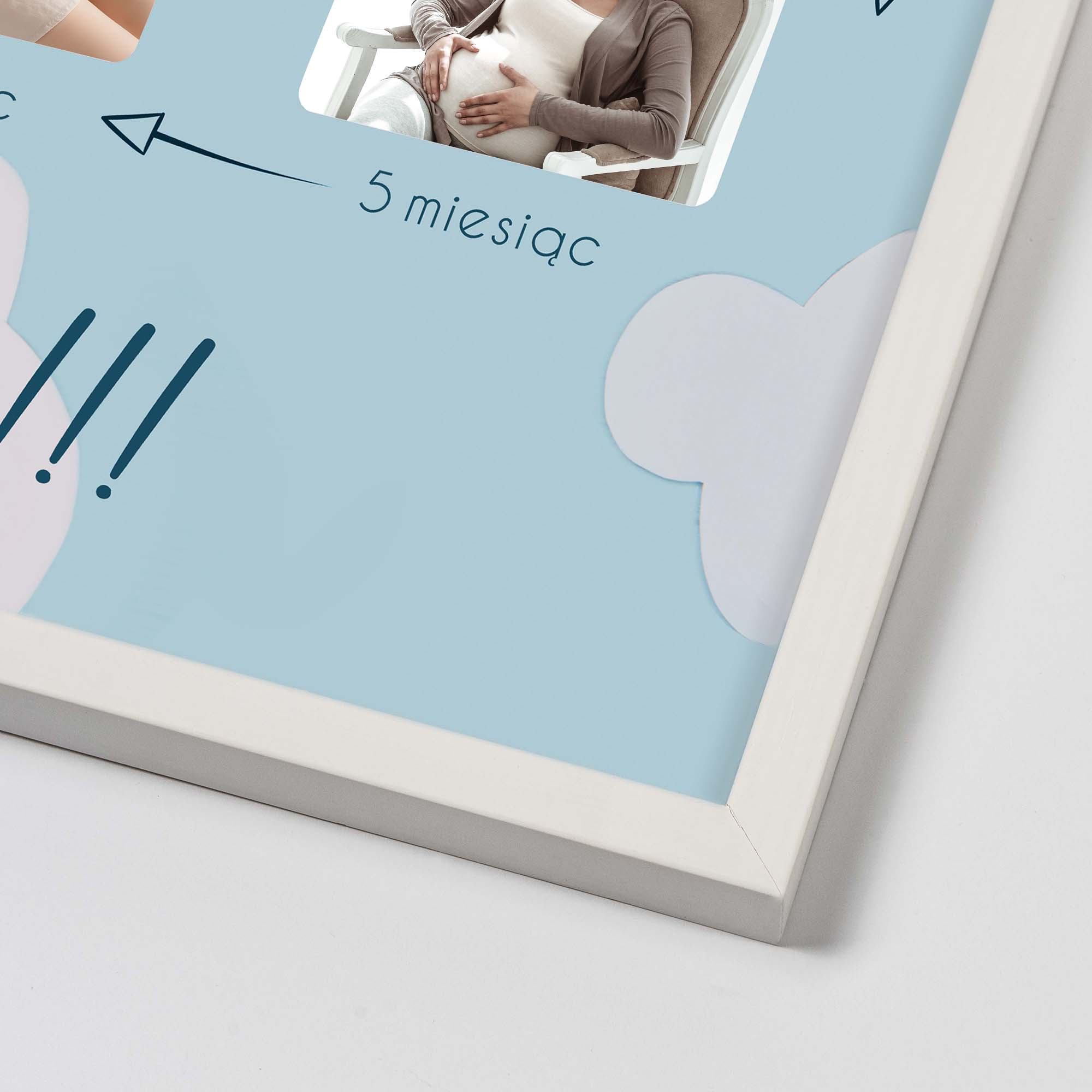 Rodzice spodziewający się dziecka już na etapie ciąży myślą o urządzeniu pokoiku lub małego kącika. Poza niezbędnymi elementami wyprawki warto pamiętać również o dekoracjach, które nadadzą wnętrzu przytulny i domowy charakter. Świetnym rozwiązaniem będą stylowe ramki w których możemy umieścić fotografie z sesji zdjęciowej ukazujące piękno Twojego brzuszka. Ramki wykonane są z bezpiecznych materiałów, dlatego mogą być z powodzeniem zawieszone w pokoju, gdzie śpi i przebywa niemowlę.