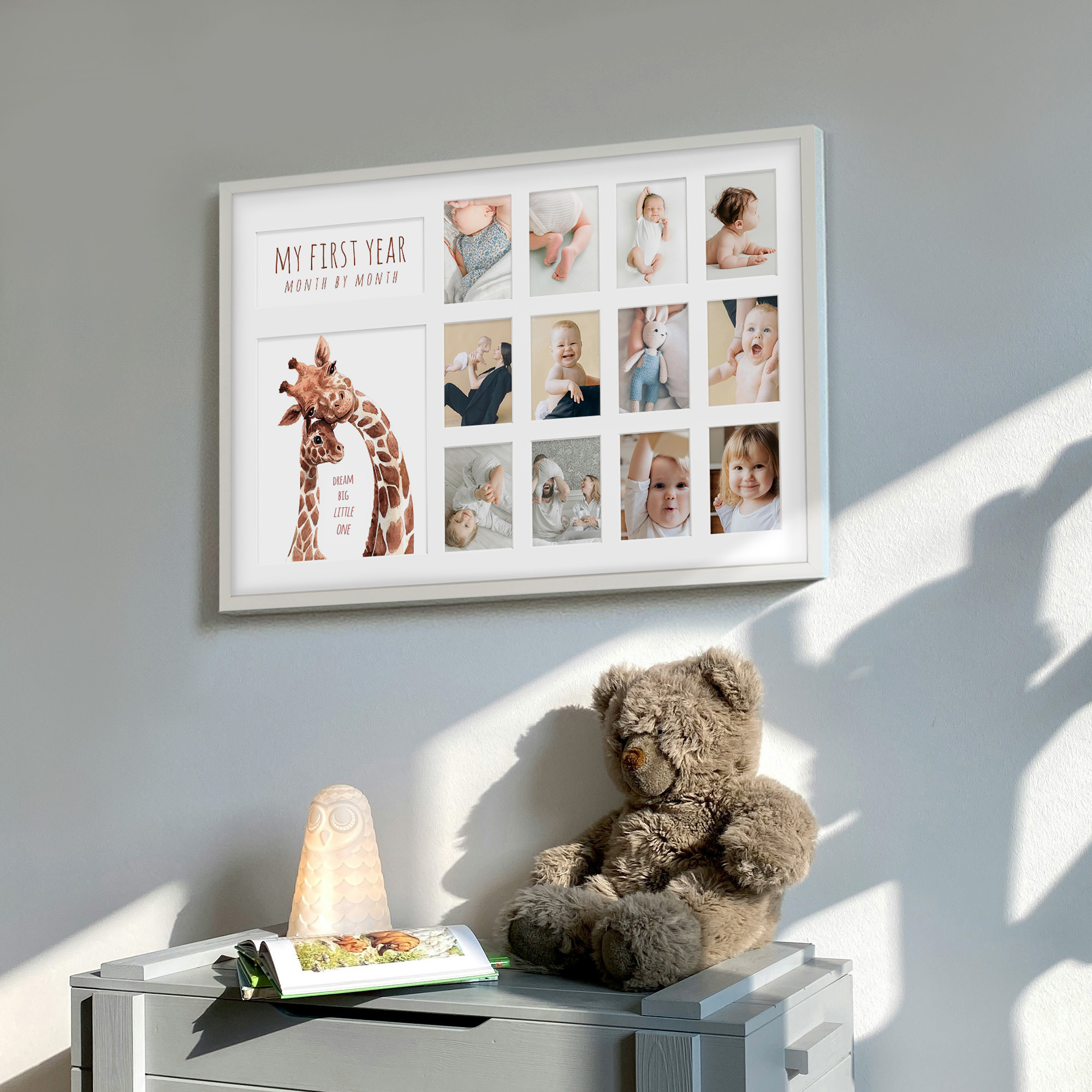 Ramka wspomnień „Mój pierwszy roczek” kalendarz – kolaż pierwszych 12 miesięcy życia dziecka
