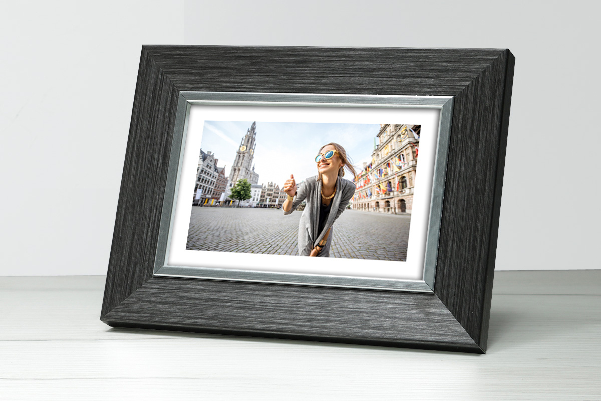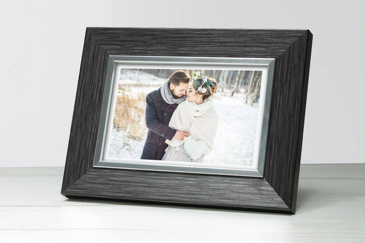 Ramka z tworzywa na zdjęcia - MIX E 5 w kolorze grafitowym ze srebrnym paskiem