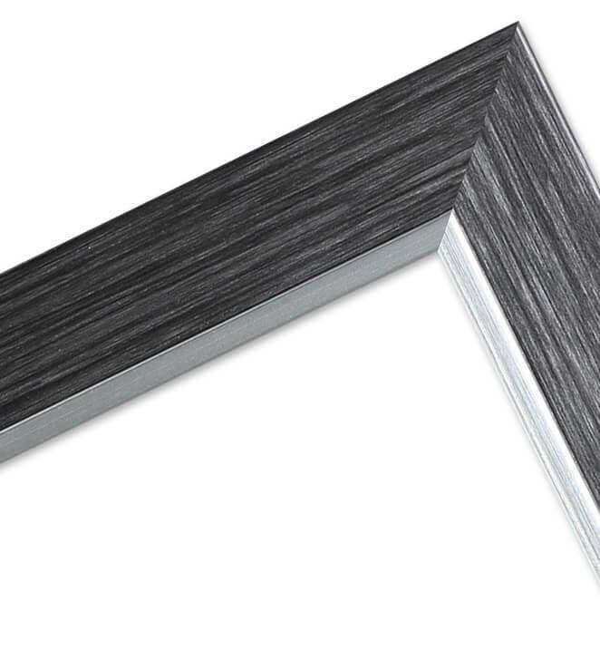 Fotoramka wykonana z tworzywa w grafitowym ze srebrnym paskiem o przekroju profilu 31x16 mm. Przeznaczona jest do oprawy fotografii, plakatów i dyplomów. W zależności od formatu wyposażona jest w szkło mineralne lub bezbarwne szkło organiczne - wysokiej jakości plexi. Plecki wykonane są z twardej płyty HDF. Ramki na zdjęcia do rozmiaru 18x24 cm dodatkowo posiadają stopkę / nóżkę która pozwala eksponować oprawiony obraz na biurku lub regale. Ramka plastikowa MIX E 5 dostępna jest w rozmiarach od 10x15 cm do 50x70 cm.