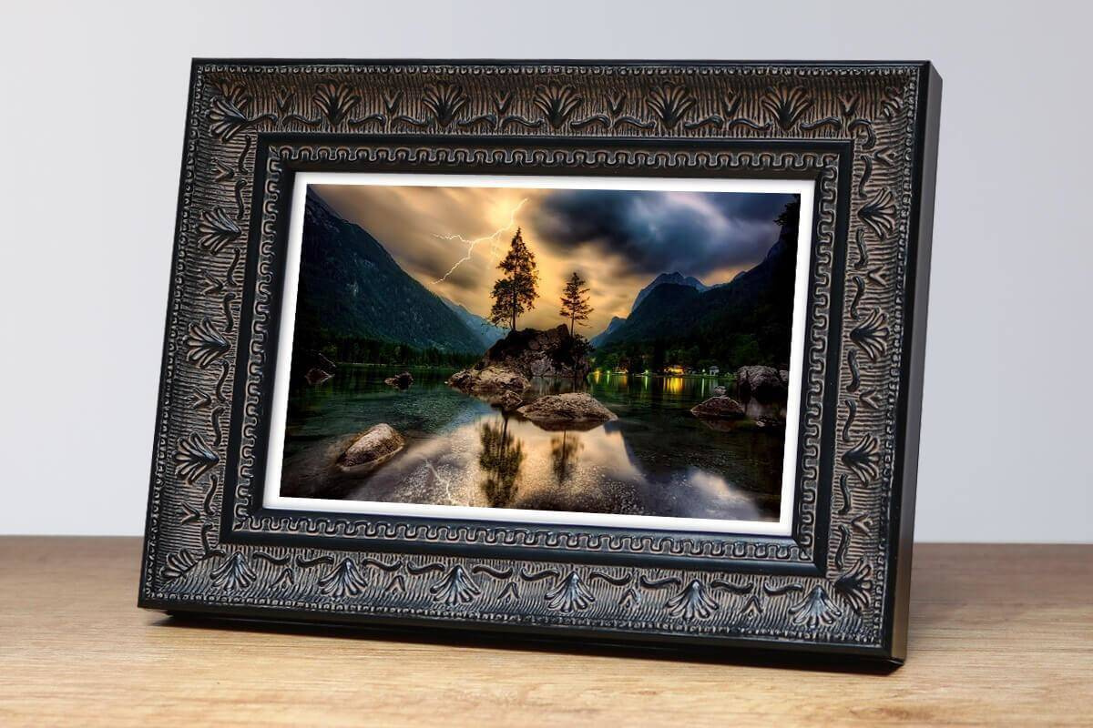 Fotoramka wykonana z tworzywa w kolorze czarno-grafitowym o przekroju profilu 29x22 mm. Przeznaczona jest do oprawy fotografii, plakatów i dyplomów. W zależności od formatu wyposażona jest w szkło mineralne lub bezbarwne szkło organiczne - wysokiej jakości plexi. Plecki wykonane są z twardej płyty HDF. Ramki na zdjęcia do rozmiaru 18x24 cm dodatkowo posiadają stopkę / nóżkę która pozwala eksponować oprawiony obraz na biurku lub regale. Ramka plastikowa MIX R 23 dostępna jest w rozmiarach od 10x15 cm do 50x70 cm.