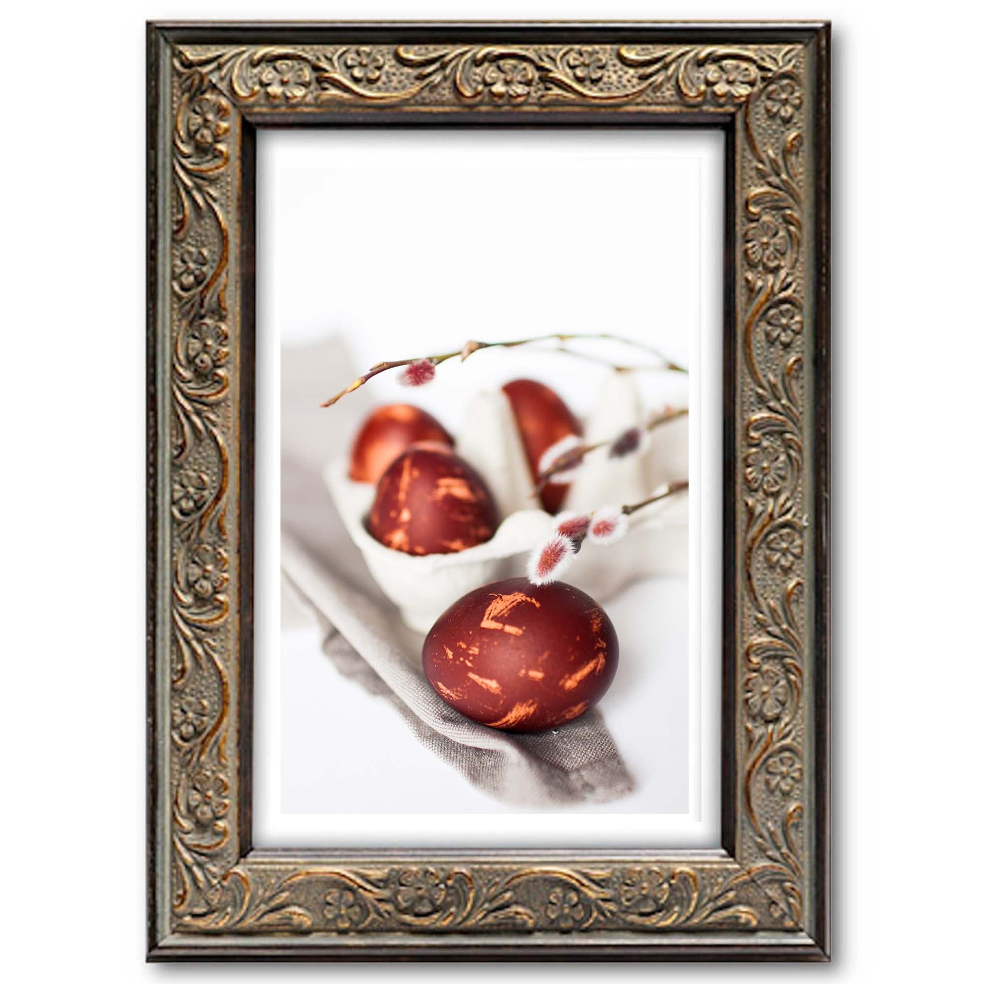 Ramka: z tworzywa. Przód oprawy: szkło mineralne, o grubości 2 mm występuje do formatu 30x40 (włącznie) / powyżej szkło organiczne 2 mm - plexi. Tył oprawy: wykonany jest z twardej płyty HDF o grubości 3 mm. Blaszki mocujące: miękkie blaszki mocujące tył ramki, zapewniają możliwość wielokrotnego otwierania. Ramka z podpórką: stopka występuje do formatu 18x24 cm umożliwia postawienie w pionie lub poziomie. Wieszak: stabilna metalowa zawieszka z możliwością ekspozycji pionowo lub poziomo. Opakowanie: ramki posiadają zabezpieczające narożniki tekturowe oraz folię ochronną. Gwarancja satysfakcji: Najwyższa jakość, gatunek I. Produkt polski.