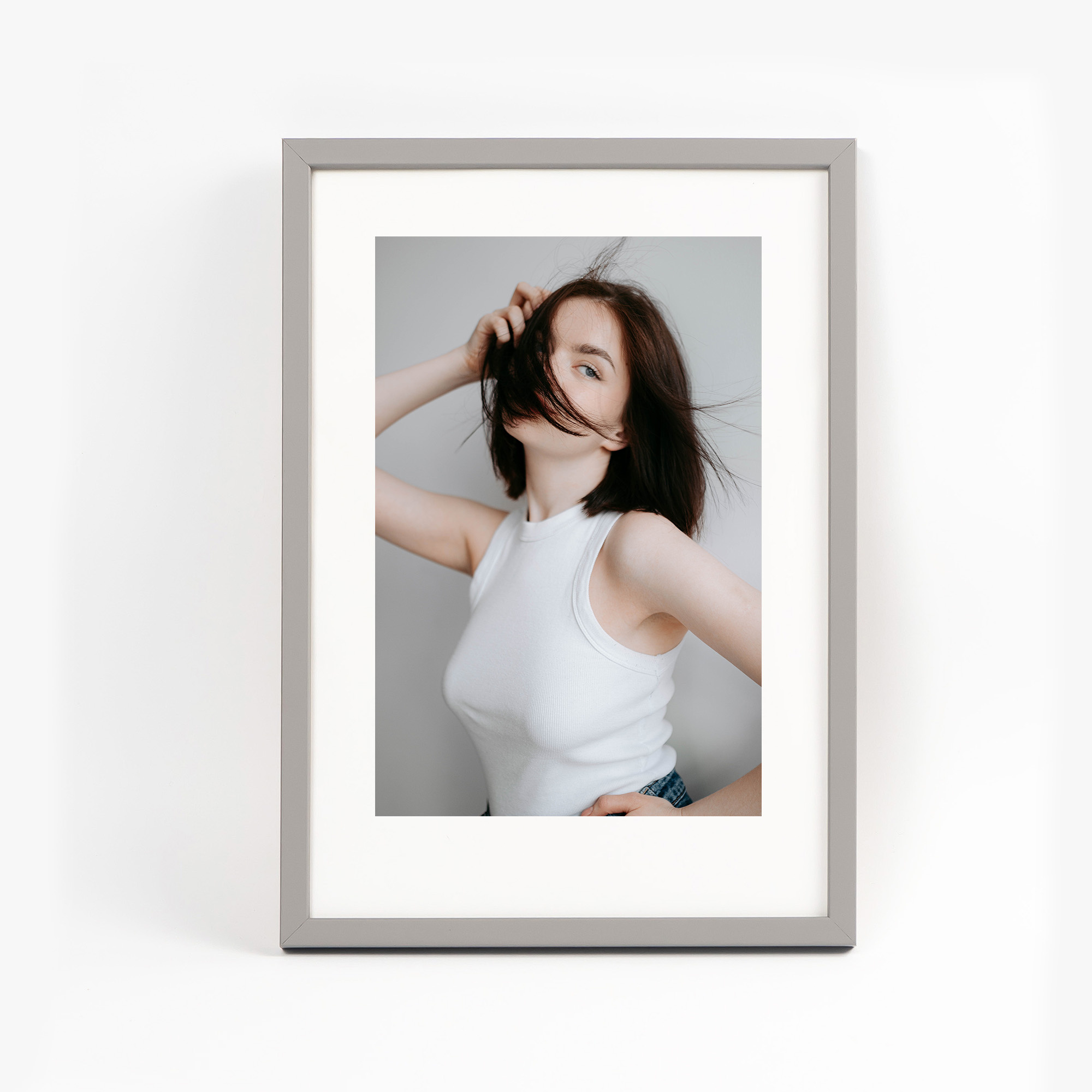 Ramka na zdjęcia PINIA 05 nowocześnie i stylowo oprawi zdjęcia, dyplomy jak i dowolne grafiki. Efekt prostych linii w połączeniu w kolorze szarym popielatym pozwala uzyskać zdumiewający efekt. Modna stylistyka i zaznaczona rama o szerokości 11 mm i wysokości 14 mm przykuje uwagę.