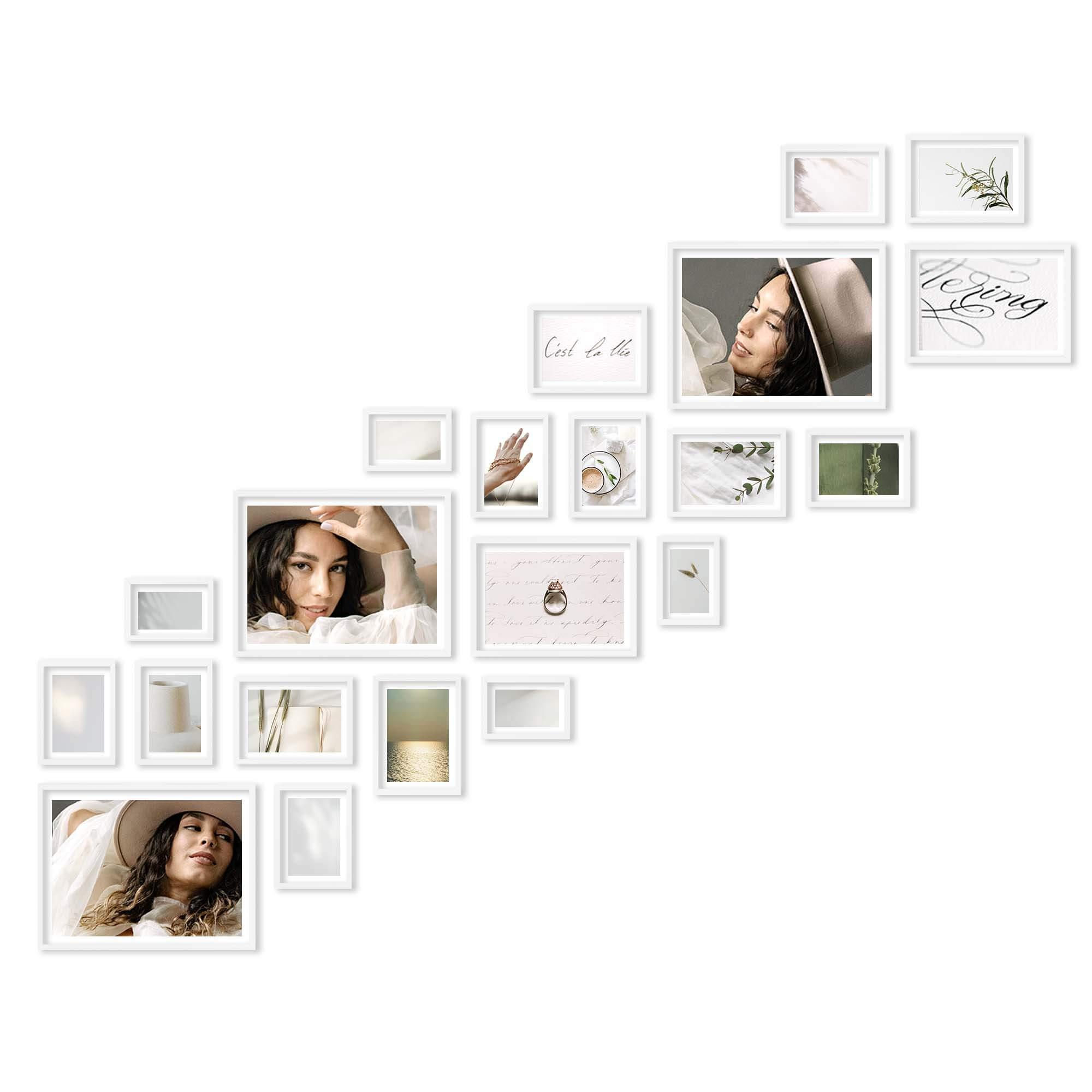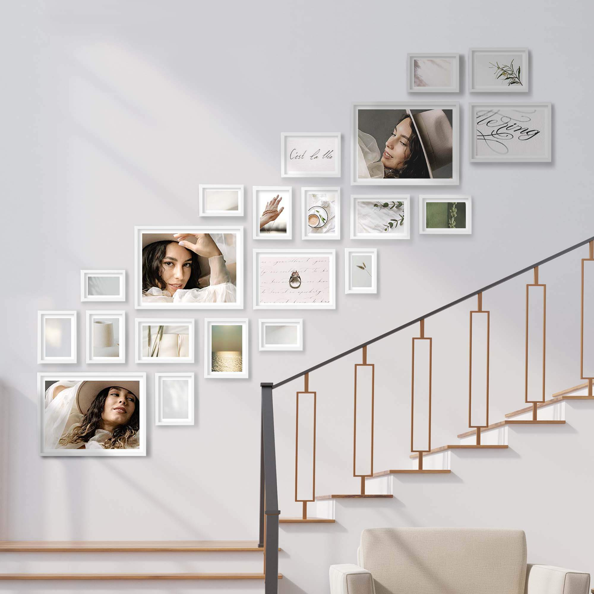 Nowoczesne galerie ścienne to prosty i efektowny sposób na aranżację ściany przy schodach. Dekoracyjny produkt pozwala stworzyć niebanalną kompozycję składającą się z 21 sztuk ramek. Wszystkie ramki zostały wykonane w 100% z drewna wysokiej jakości, dzięki czemu są trwałe i solidne.