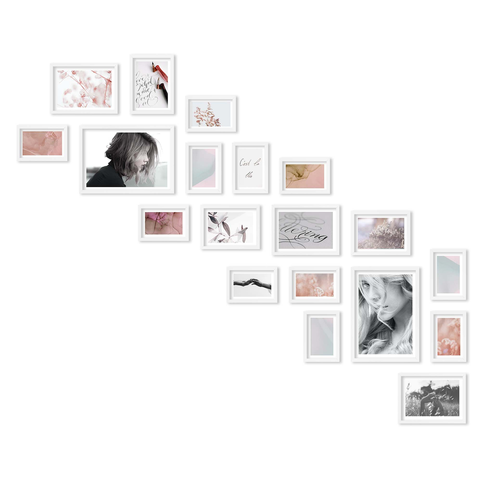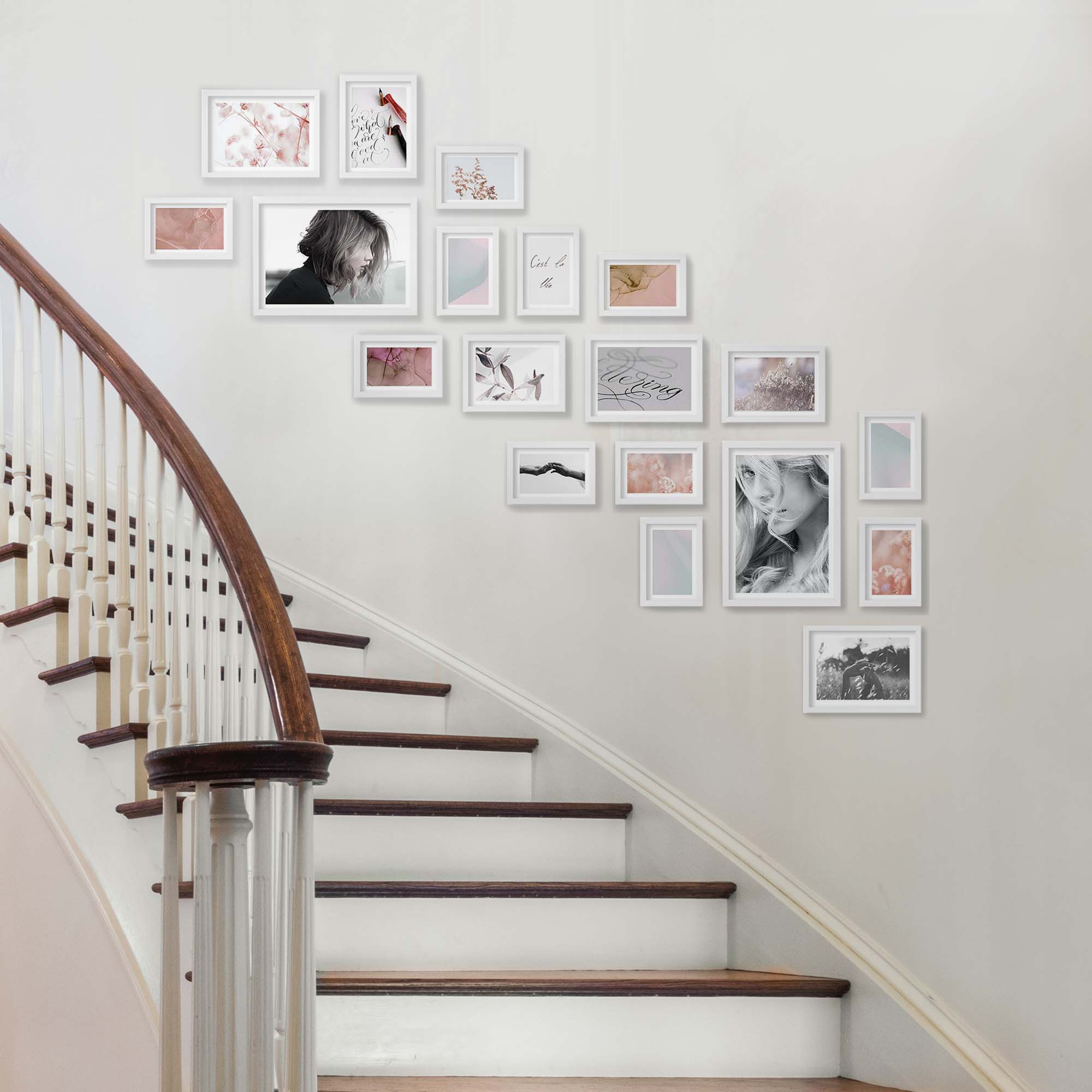 Nowoczesne galerie ścienne to prosty i efektowny sposób na aranżację ściany przy schodach. Dekoracyjny produkt pozwala stworzyć niebanalną kompozycję składającą się z 19 sztuk ramek. Wszystkie ramki zostały wykonane w 100% z drewna wysokiej jakości, dzięki czemu są trwałe i solidne.