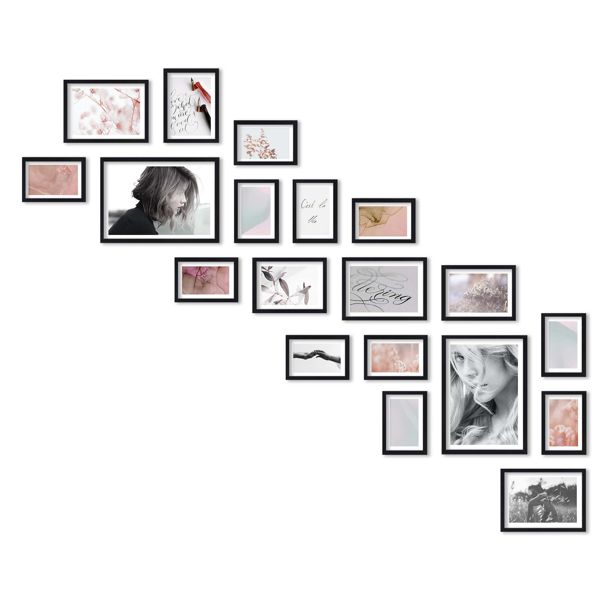 Nowoczesne galerie ścienne to prosty i efektowny sposób na aranżację ściany przy schodach. Dekoracyjny produkt pozwala stworzyć niebanalną kompozycję składającą się z 19 sztuk ramek. Wszystkie ramki zostały wykonane w 100% z drewna wysokiej jakości, dzięki czemu są trwałe i solidne.