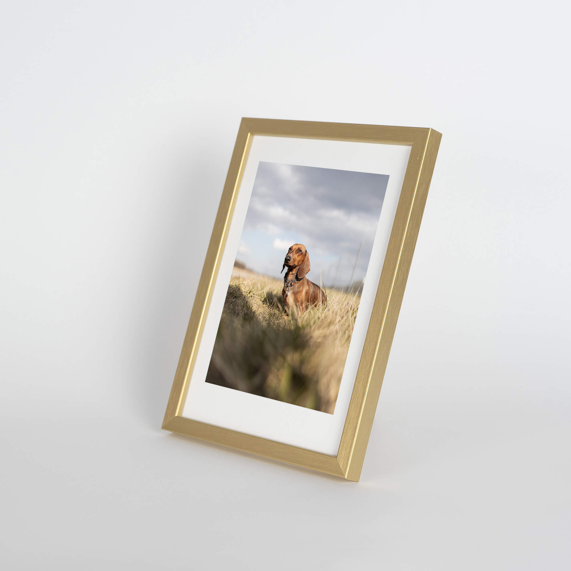 Ramka na zdjęcia PINIA Z nowocześnie i stylowo oprawi zdjęcia, dyplomy jak i dowolne grafiki. Efekt prostych lini w połączeniu z pięknym odcieniem złota pozwala uzyskać zdumiewający efekt. Modna stylistyka i zaznaczona rama o szerokości 11 mm i wysokości 14 mm przykuje uwagę.