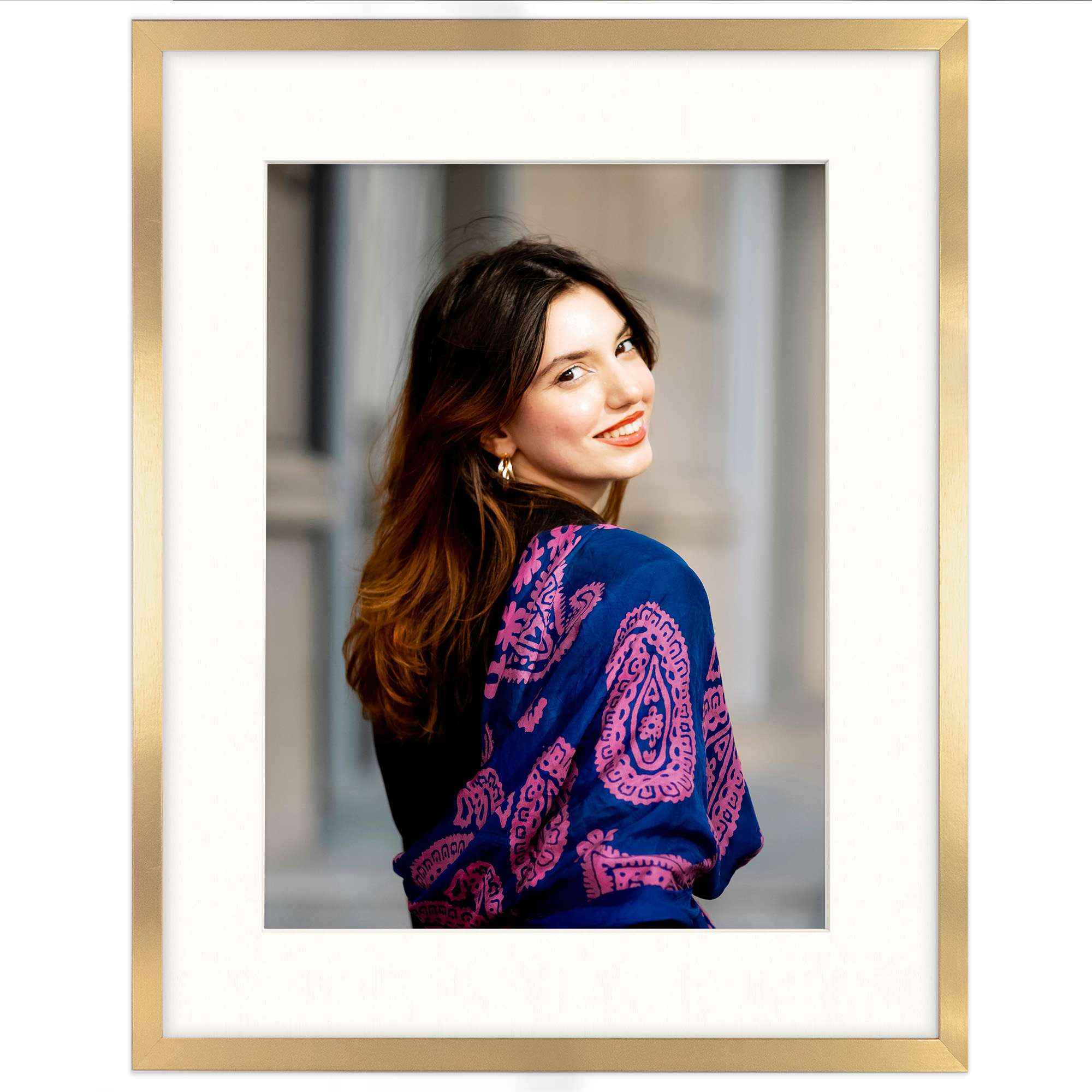 Ramka wykonana z trwałego MDF-u w eleganckim, złotym kolorze. Zawiera passe-partout dopasowane do zdjęcia o wymiarach 30 × 40 cm, które dodaje całości stylowego wyglądu i podkreśla oprawione zdjęcie lub grafikę.