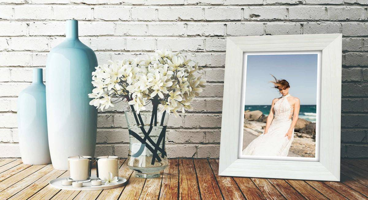 Nowoczesna fotoramka w białym kolorze, z widoczną strukturą drewna o przekroju profilu 21x21 mm wykonana w 100% z drewna. Przeznaczona jest do oprawy fotografii, plakatów i dyplomów. W zależności od formatu wyposażona jest w szkło mineralne lub bezbarwne szkło organiczne - wysokiej jakości plexi. Plecki wykonane są z twardej płyty HDF. Ramki na zdjęcia do rozmiaru 18x24 cm dodatkowo posiadają stopkę / nóżkę która pozwala eksponować oprawiony obraz na biurku lub regale. Ramka drewniana DRL D 1 dostępna jest w rozmiarach od 10x15 cm do 50x70 cm.