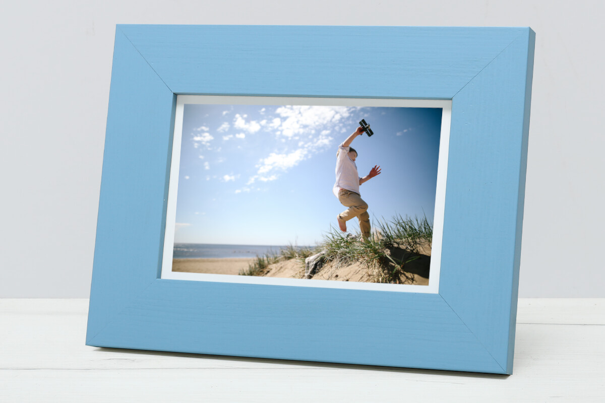 Nowoczesna fotoramka w kolorze niebieskim (błękitnym) o przekroju profilu 35x13 mm wykonana w 100% z drewna. Przeznaczona jest do oprawy fotografii, plakatów i dyplomów. Pięknie wkomponuje się w wiele wnętrz od klasycznych po nowoczesne.