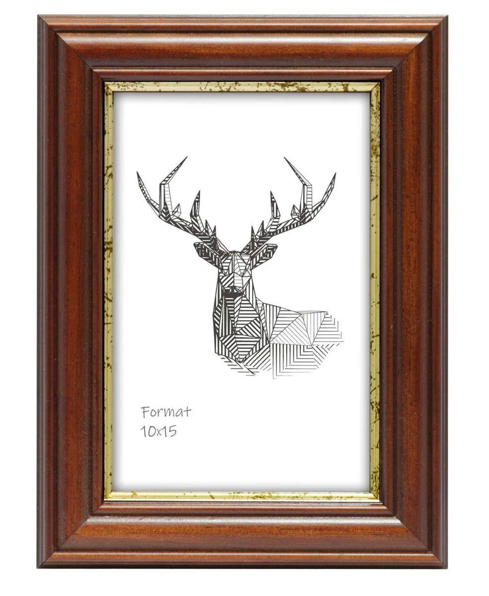 Ramka drewniana na zdjęcia - DRL F 3 w kolorze brązowym ze złotym paskiem