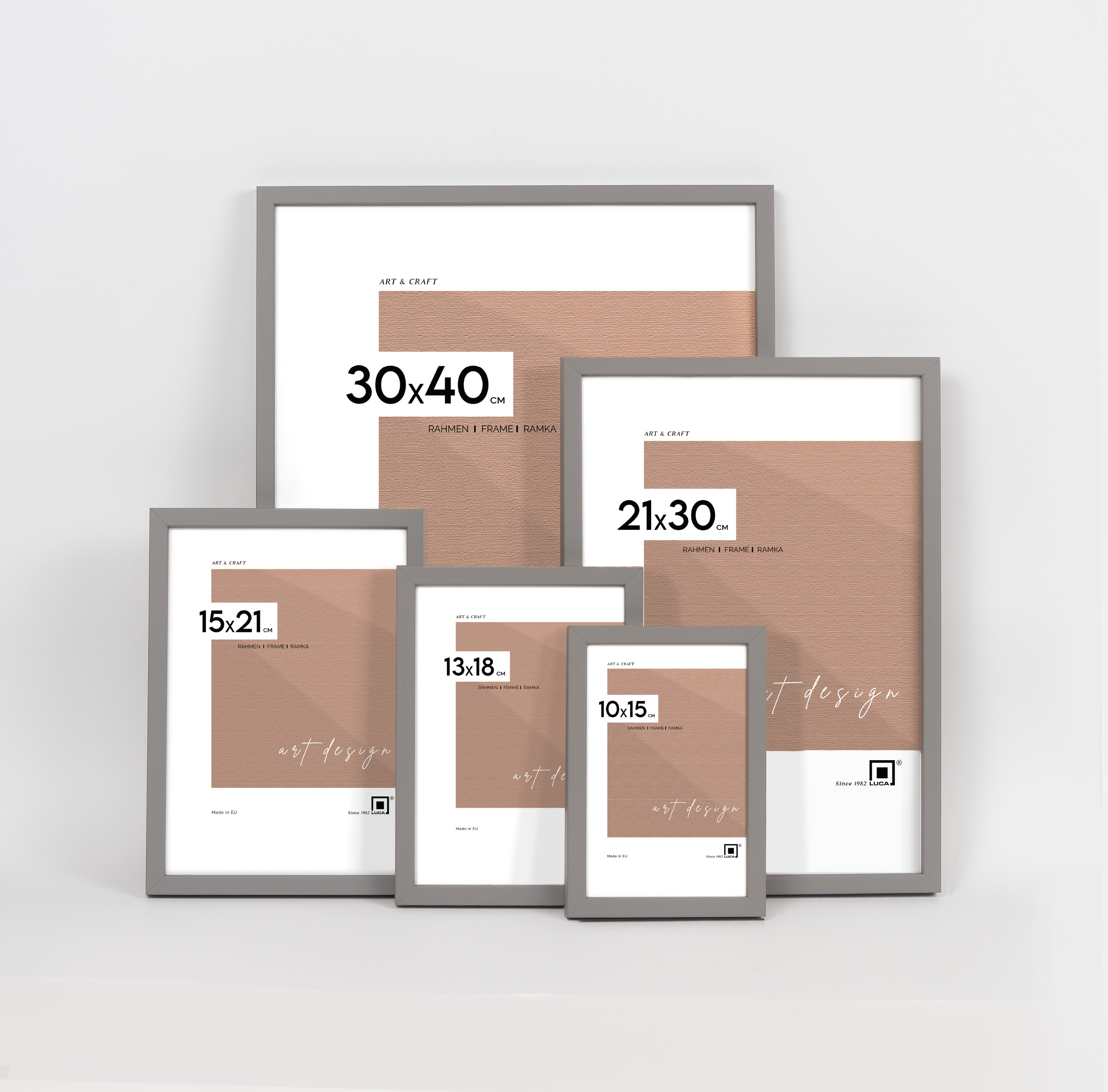Ramka na zdjęcia PINIA 05 nowocześnie i stylowo oprawi zdjęcia, dyplomy jak i dowolne grafiki. Efekt prostych linii w połączeniu w kolorze szarym popielatym pozwala uzyskać zdumiewający efekt. Modna stylistyka i zaznaczona rama o szerokości 11 mm i wysokości 14 mm przykuje uwagę.
