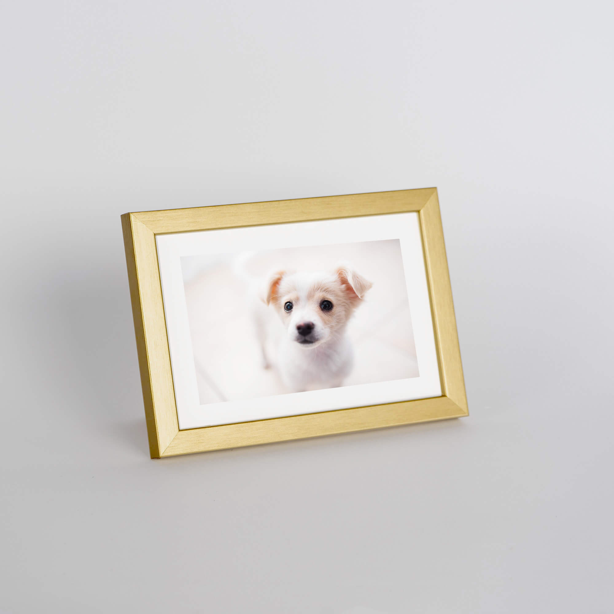 Ramka na zdjęcia PINIA Z nowocześnie i stylowo oprawi zdjęcia, dyplomy jak i dowolne grafiki. Efekt prostych lini w połączeniu z pięknym odcieniem złota pozwala uzyskać zdumiewający efekt. Modna stylistyka i zaznaczona rama o szerokości 11 mm i wysokości 14 mm przykuje uwagę.