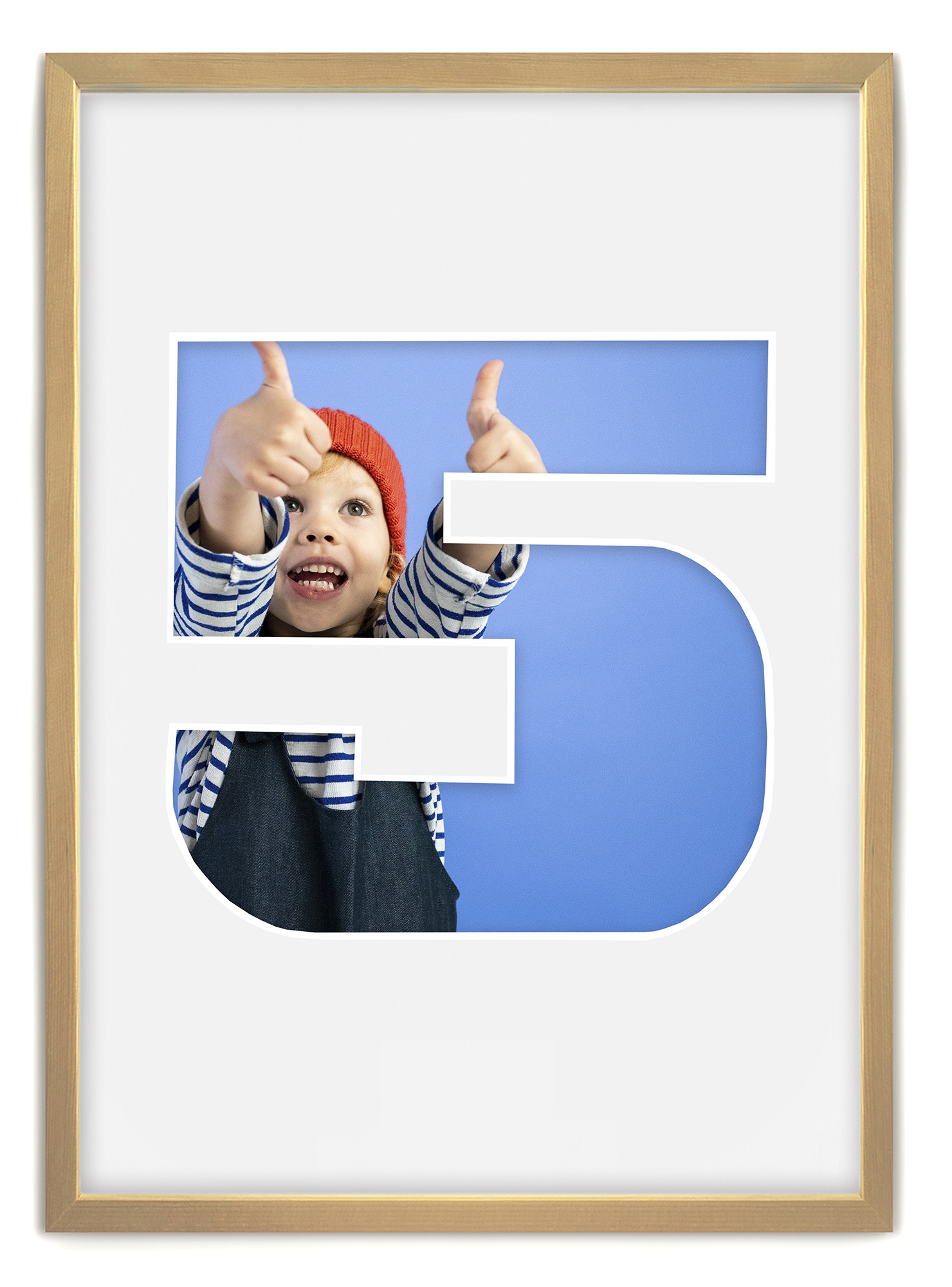 Ramka na zdjęcia CYFERKA "5" 21x30 cm naturalne drewno z białym passe partout