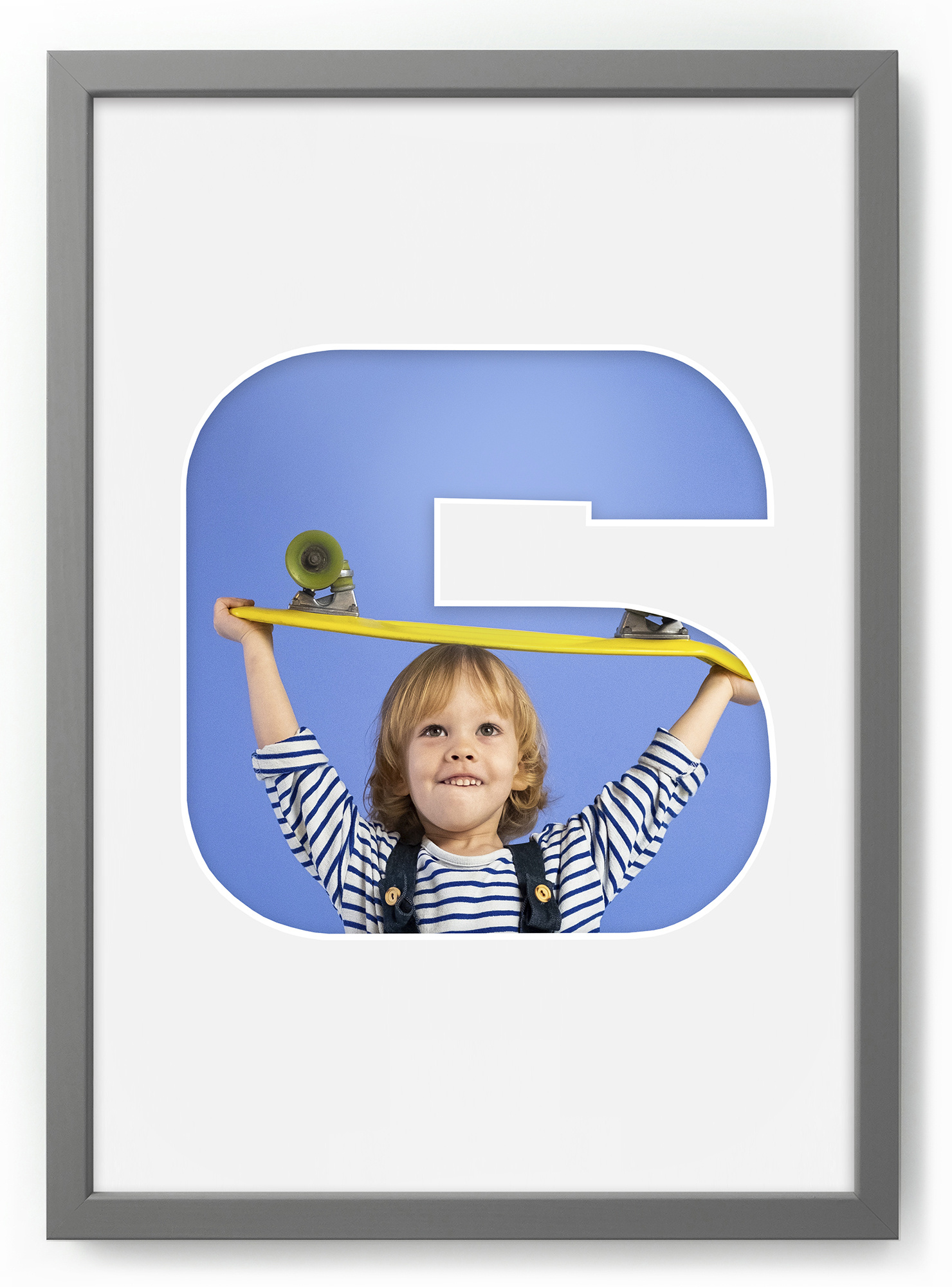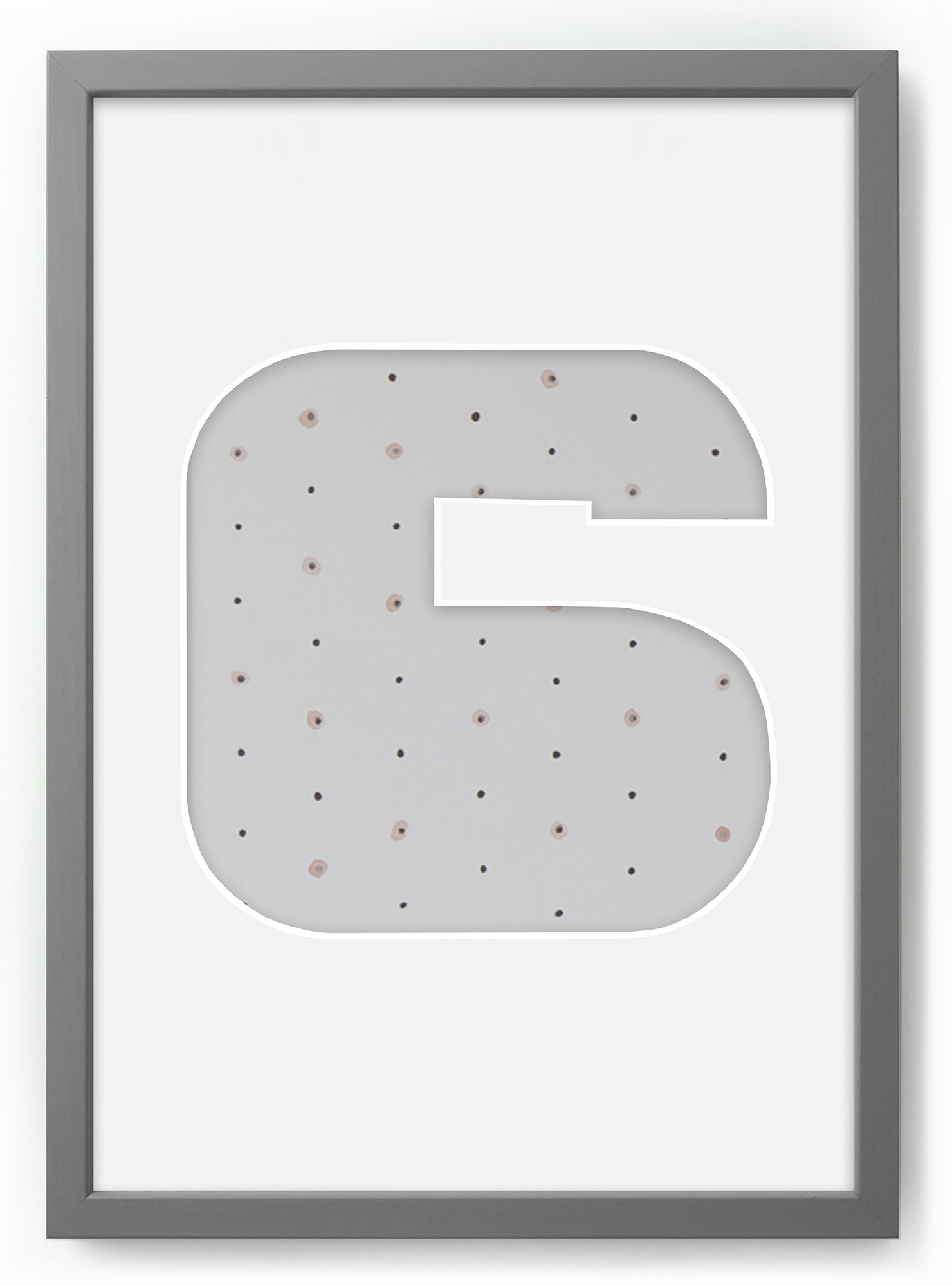 Ramka na zdjęcia CYFERKA "6" 21x30 cm szara z białym passe partout