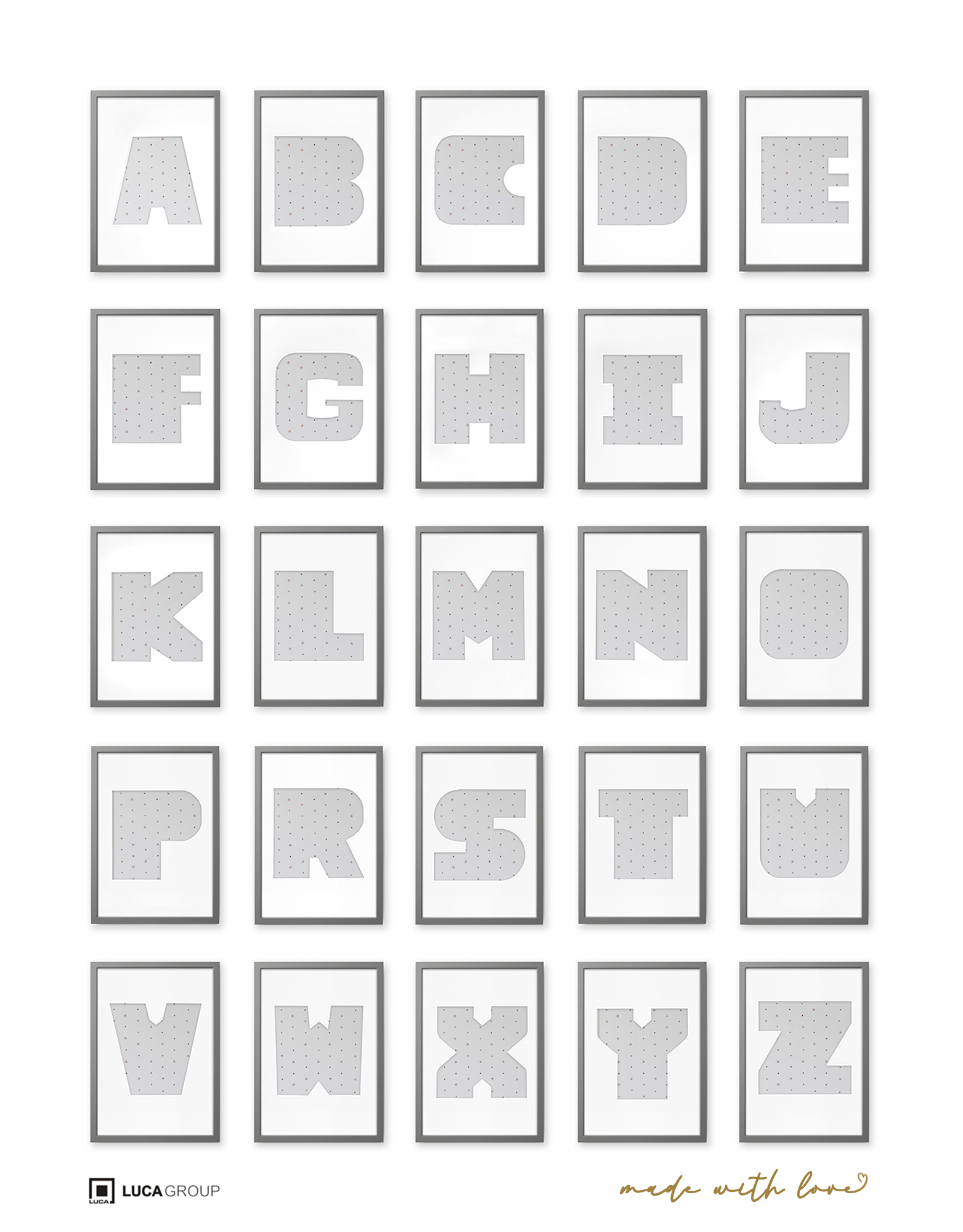 Ramki na zdjęcia z serii ABC dają nieograniczone możliwości aranżacyjne. Za pomocą kilku ramek z wyciętymi w passe partout literkami można stworzyć na ścianie napis, hasło motywacyjne czy przedstawić ulubiony slogan. To też wspaniały sposób na zaprezentowanie nazwy firmy lub brandu w przestrzeni biurowej, bądź w recepcji. W ofercie dostępne są ramki w czterech wariantach kolorystycznych - białe, czarne, naturalne drewno i szare. Pomysłem na aranżację, będzie zakup kilku ramek, dzięki czemu stworzymy na ścianie oryginalną galerię. Ramki na zdjęcia stały się nieodłącznym elementem wystroju wnętrz, które przynoszą na myśl miłe wspomnienia. Ich dodatkową zaletą jest minimalistyczny design oraz stylowe wykończenie.