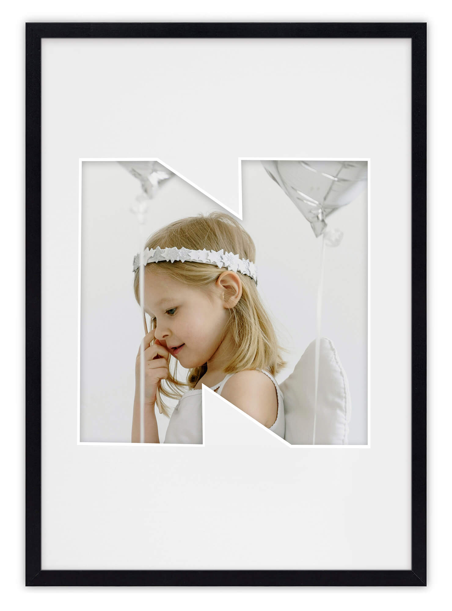 Ramka na zdjęcia LITERKA "N" 21x30 cm czarna z białym passe partout