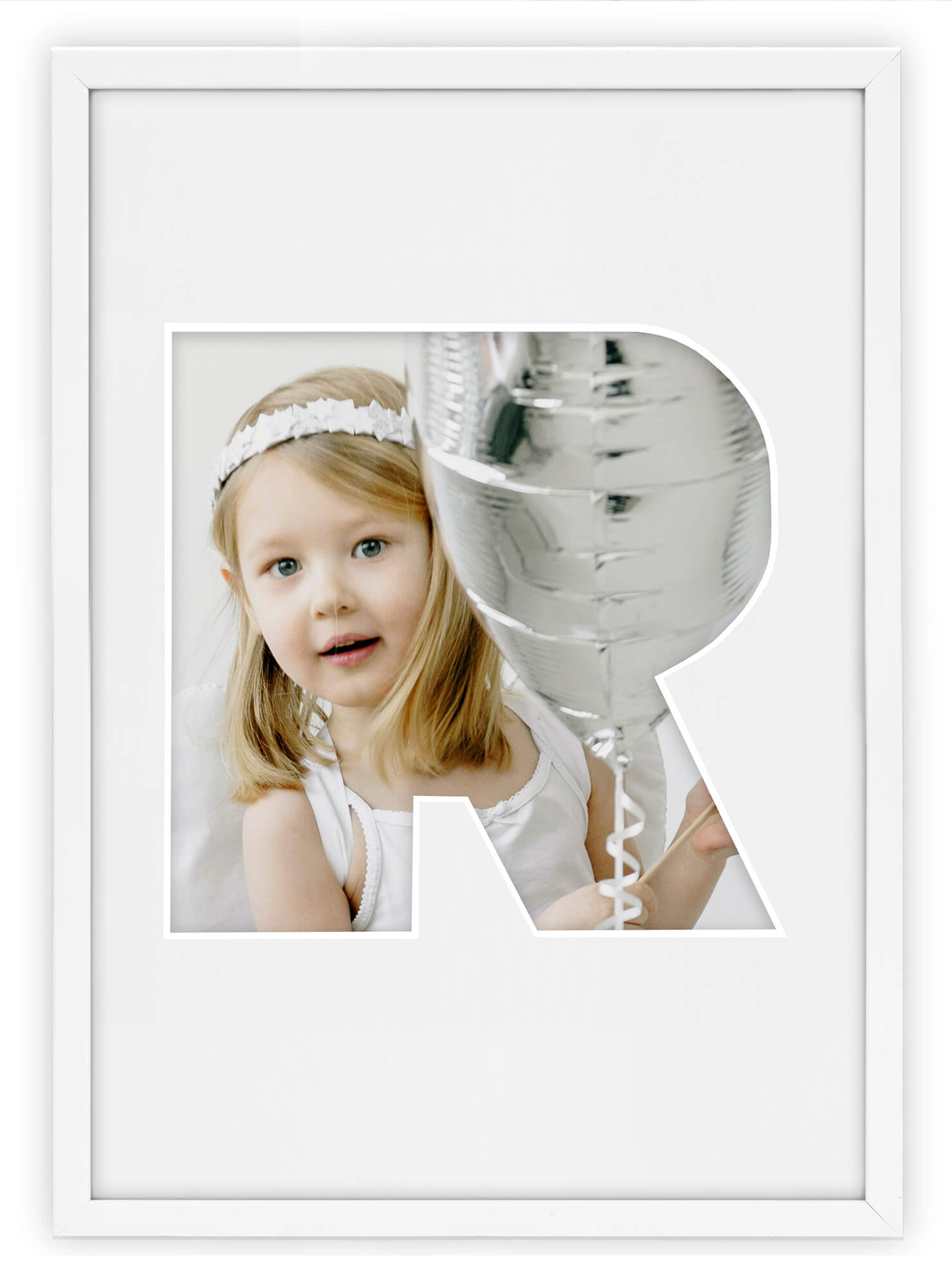 Ramka na zdjęcia LITERKA "R" 21x30 cm biała z białym passe partout
