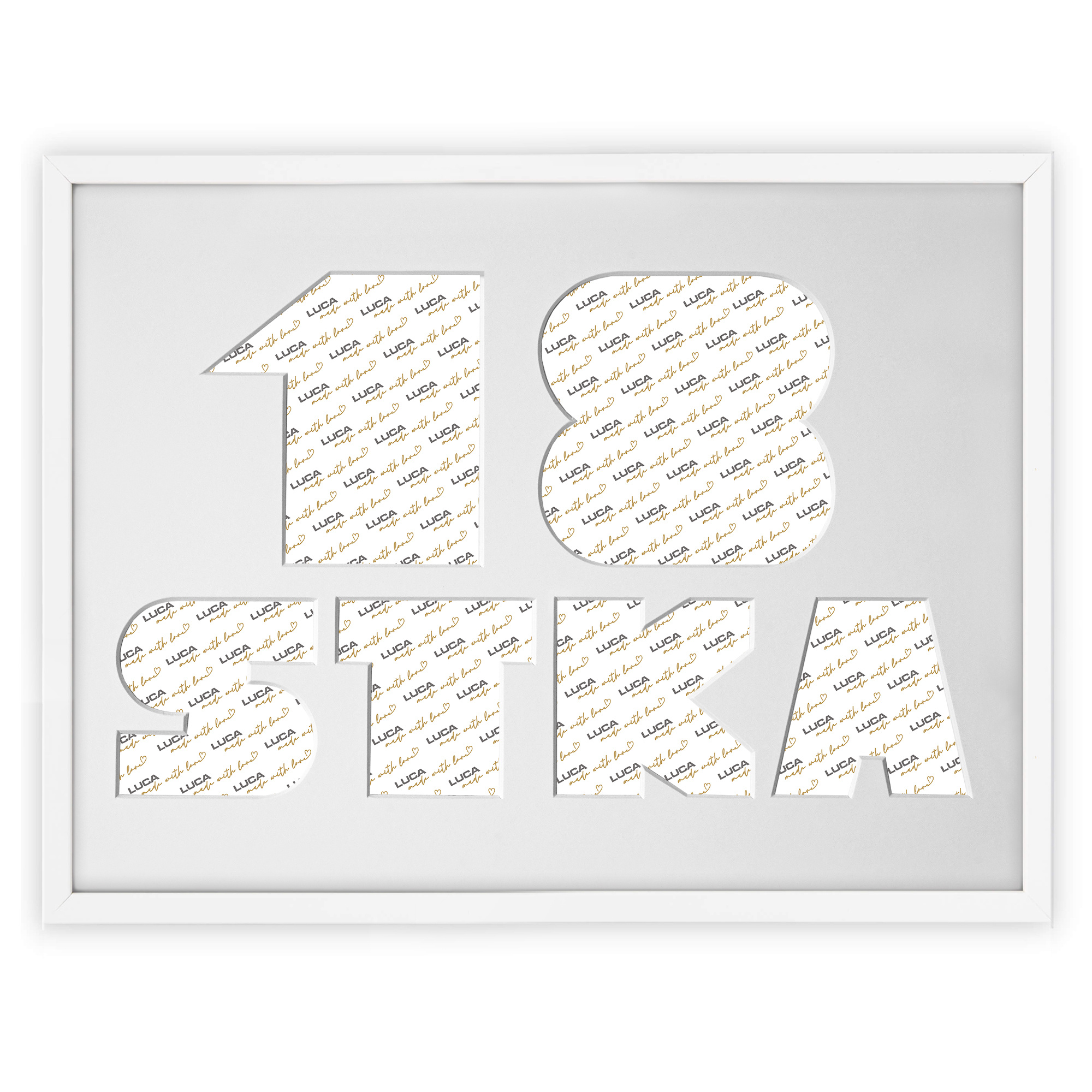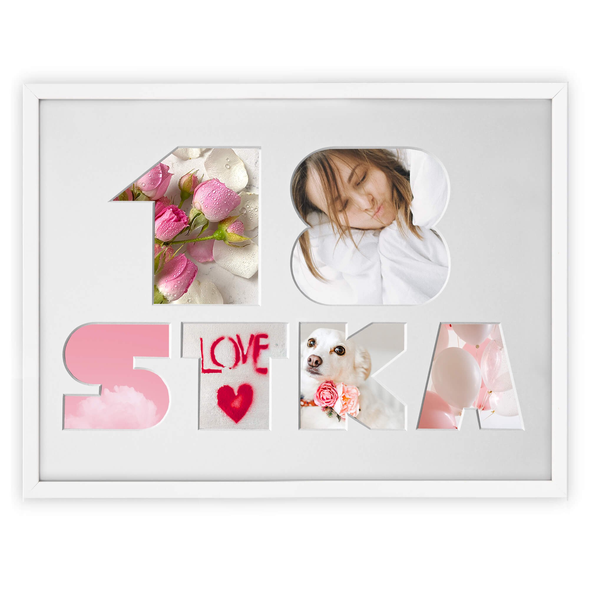 Ramka drewniana na 18-ste urodziny z passe partout o rozmiarze 30x40 cm