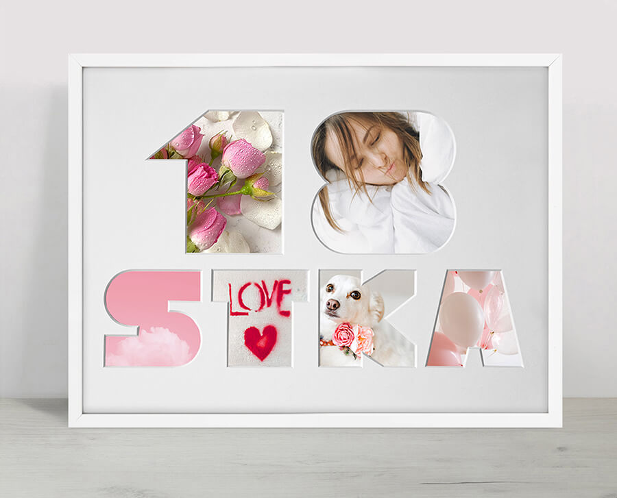 Zdjęcia umieszczone w ramkach o niebanalnym designie mogą być znakomitym sposobem na WYJĄTKOWY PREZENT! Szukasz ramki na 18-ste urodziny, która będzie pamiątką na lata? Chcesz podarować bliskiej Ci osobie coś godnego zapamiętania? Drewniana ramka na zdjęcia z pewnością sprawdzi się w tej roli idealnie! Dołączone do ramki passe partout pozwala na wykonanie kolażu 6 zdjęć: 2 zdjęcia 12x13 cm i 4 zdjęcia 8x9 cm. Wystarczy wywołać kilka zabawnych lub wzruszających fotografii i umieścić je w ramce, aby solenizant był zadowolony.