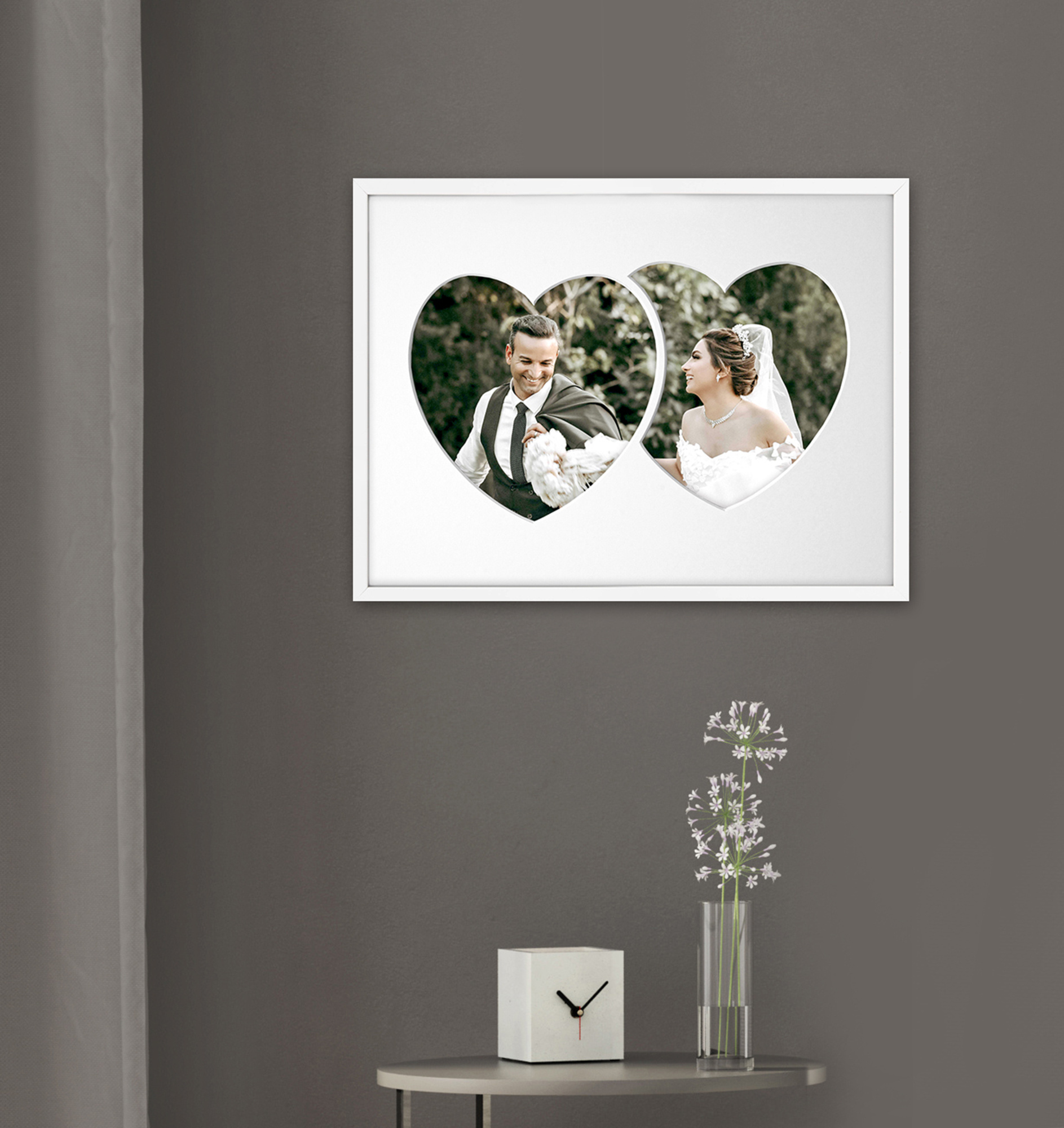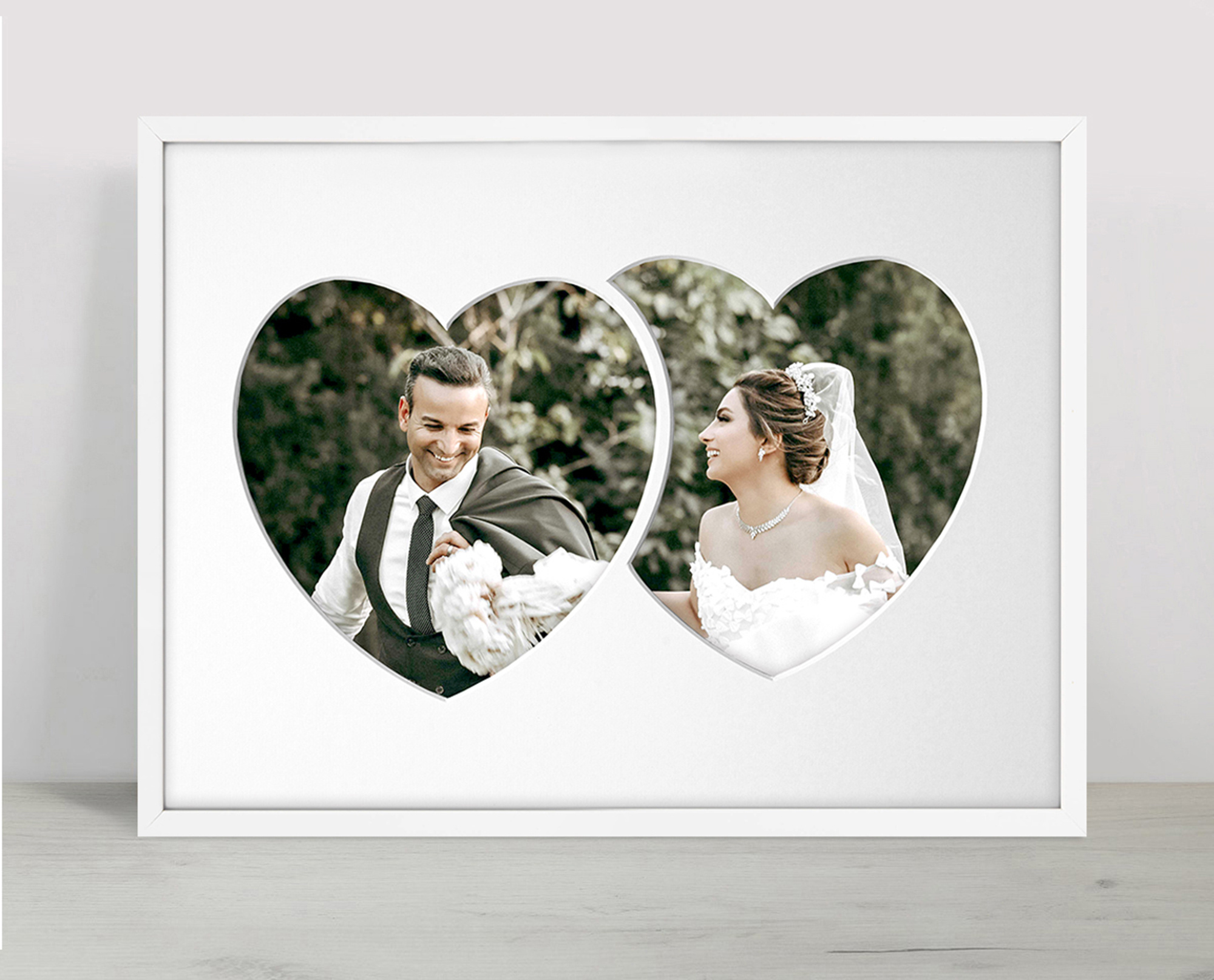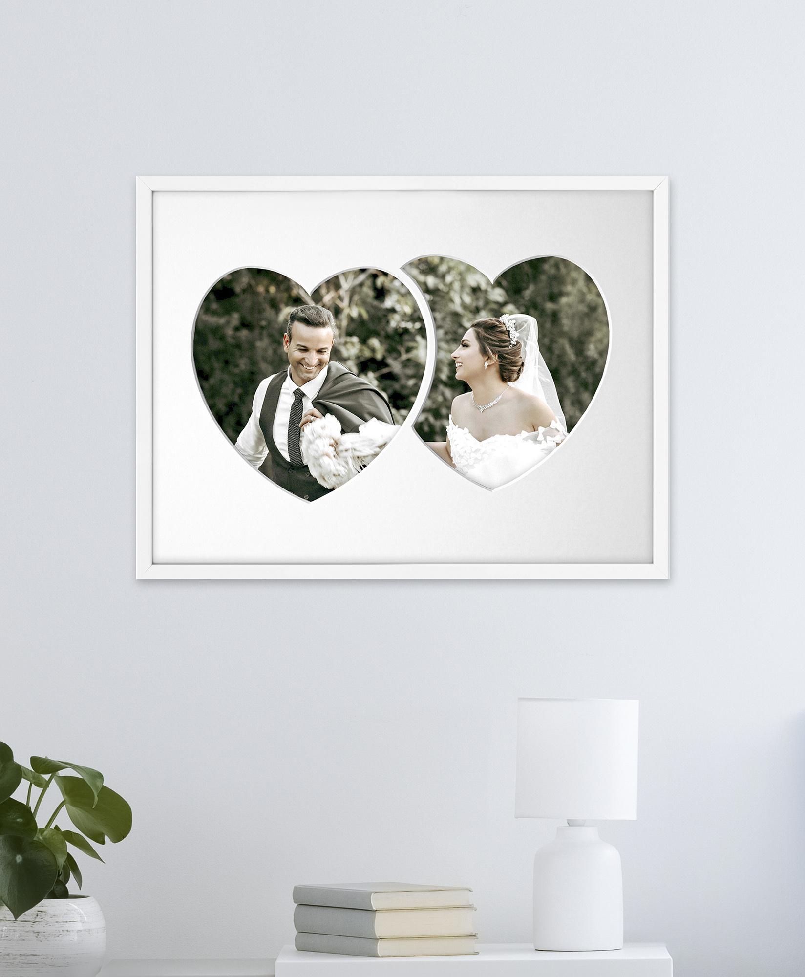Ramka DWA SERCA 30x40 cm w kolorze białym z białym passe partout
