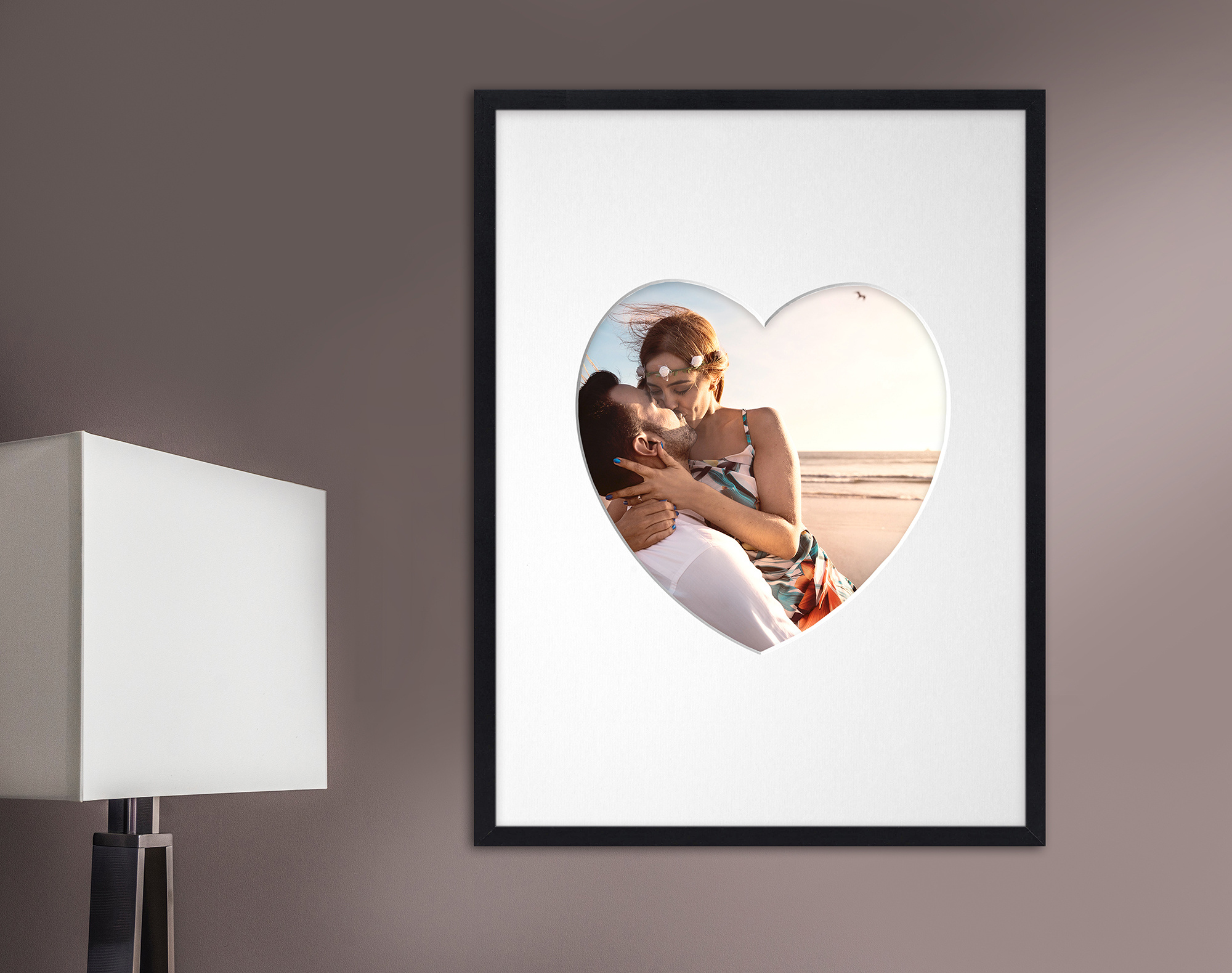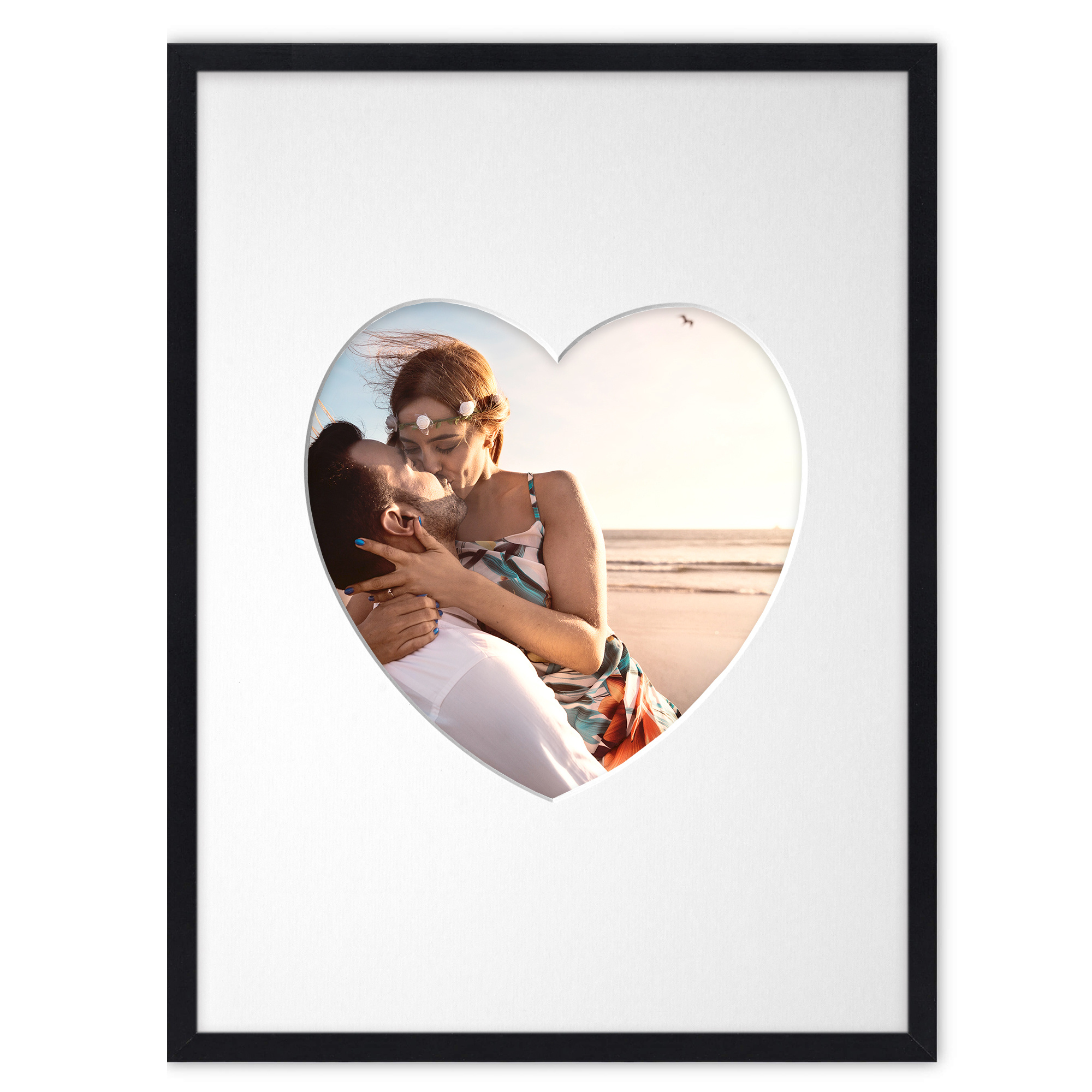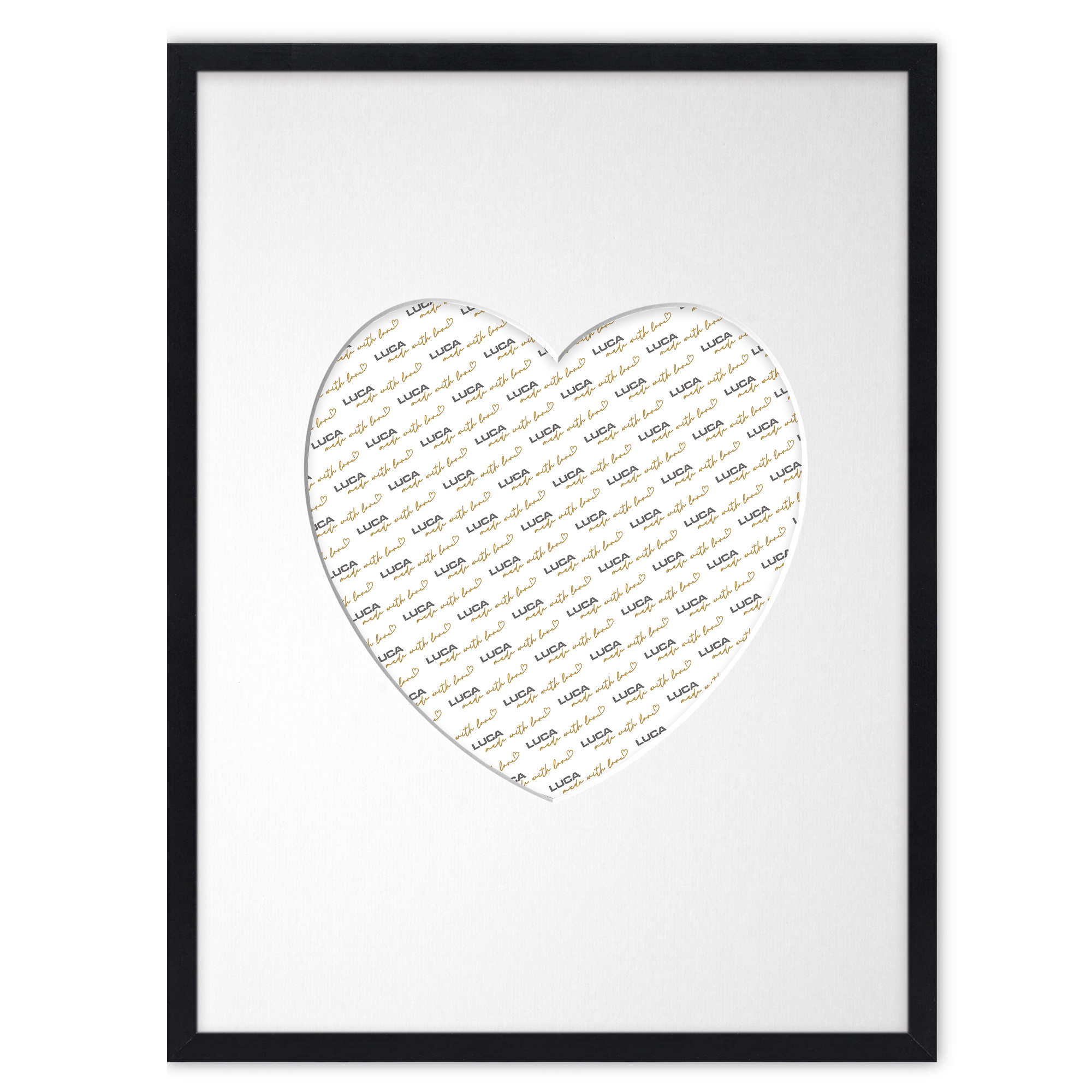 Ramka drewniana z wyciętym w passe partout sercem o rozmiarze 30x40 cm