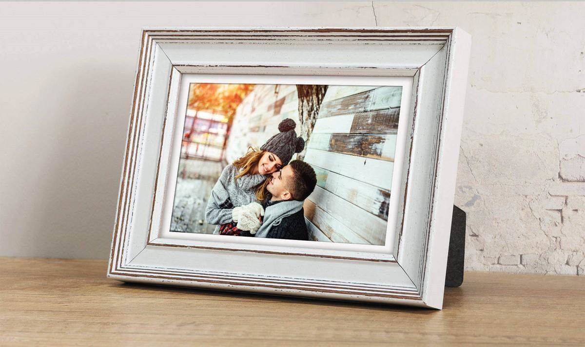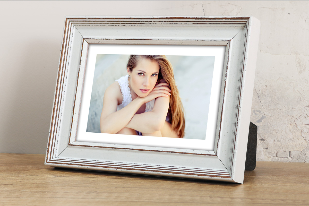Nowoczesna fotoramka w białym kolorze z przetarciami o przekroju profilu 25x21 mm wykonana w 100% z drewna. Przeznaczona jest do oprawy fotografii, plakatów i dyplomów. W zależności od formatu wyposażona jest w szkło mineralne lub bezbarwne szkło organiczne - wysokiej jakości plexi. Plecki wykonane są z twardej płyty HDF. Ramki na zdjęcia do rozmiaru 18x24 cm dodatkowo posiadają stopkę / nóżkę która pozwala eksponować oprawiony obraz na biurku lub regale. Ramka drewniana DRL Z 1 dostępna jest w rozmiarach od 10x15 cm do 50x70 cm.