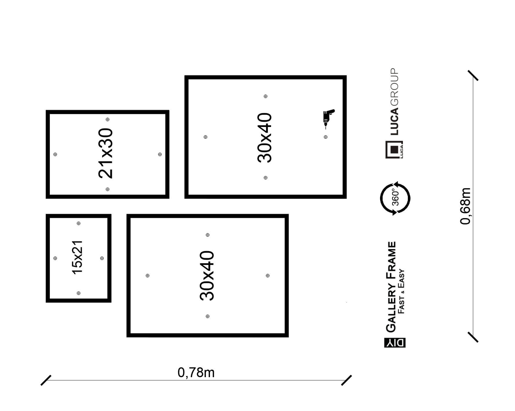 Prezentowane szablony galerii ściennych DIY Gallery FrameTM są własnością LUCA GROUP i podlegają ochronie prawnej. Kopiowanie, powielanie i rozpowszechnianie bez pisemnej zgody jest zabronione.