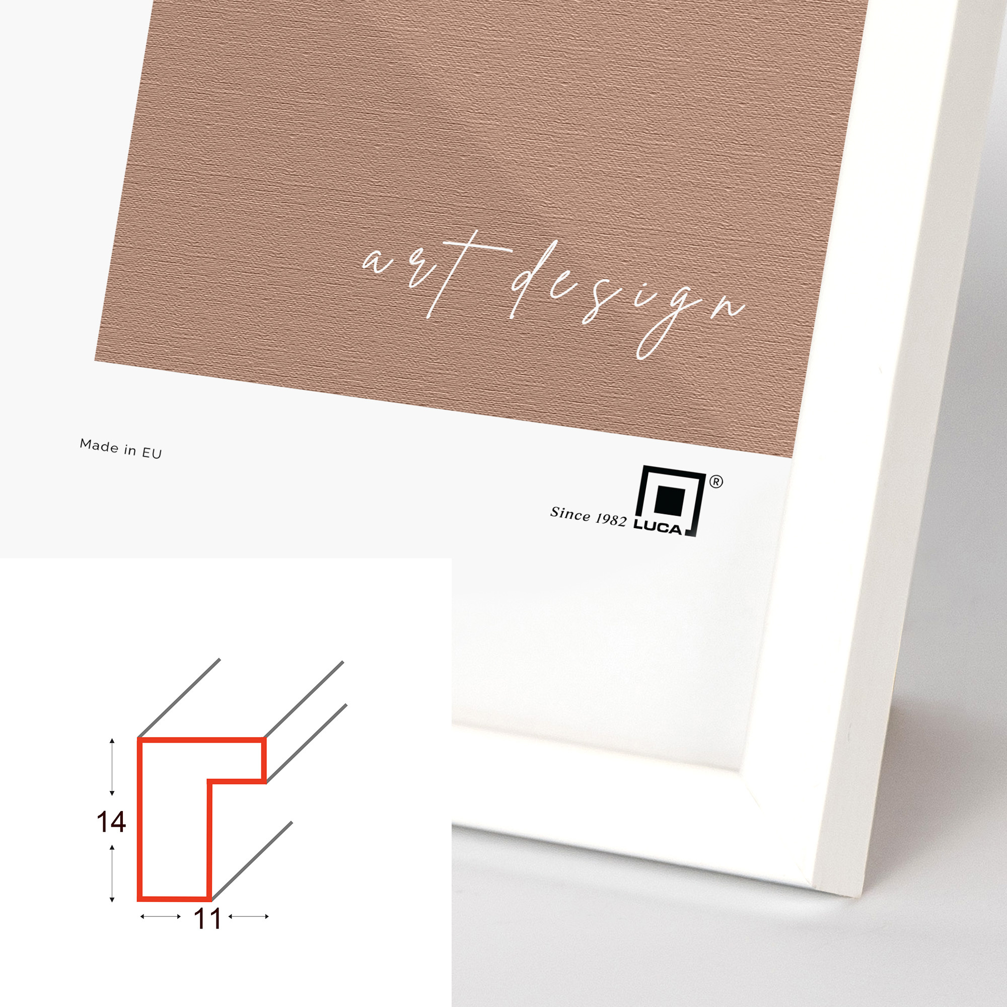 Galeria GF0001 w kolorze białym została stworzona z ramek PINIA 1 charakteryzującą się wysoką jakością i trwałością. Przy tworzeniu ich użyto wysokiej jakości drewna i trwałych zszywek "V-nail" przy łączeniach. Profil ramek to 11 mm szerokości i 14 mm wysokości. Miękkie blaszki mocujące tył ramki zapewniają możliwość wielokrotnego otwierania.