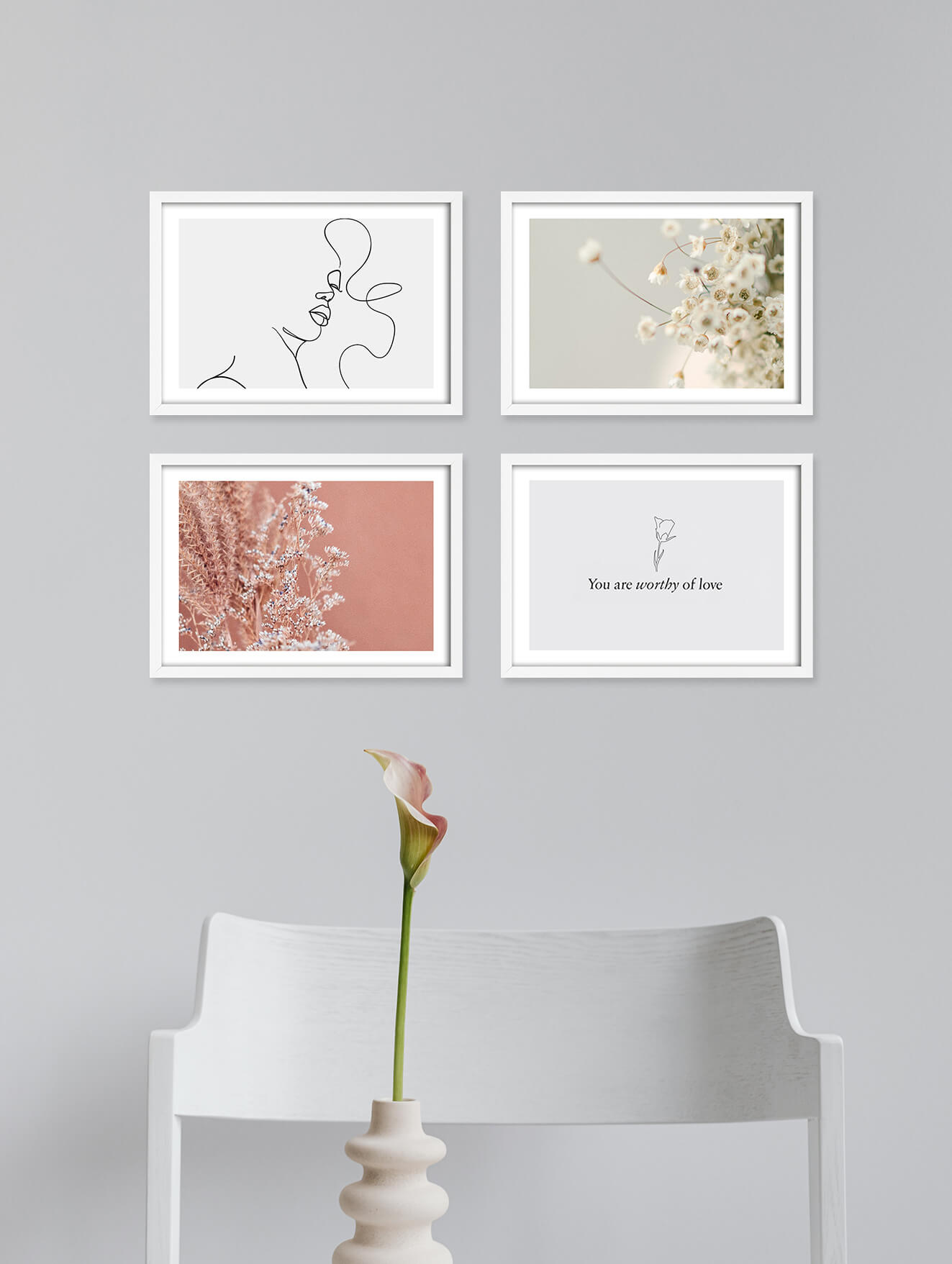 Nowoczesne galerie ścienne to prosty i efektowny sposób na aranżację każdego wnętrza. Dekoracyjny produkt pozwala stworzyć niebanalną kompozycję składającą się z 4 sztuk ramek. Wszystkie ramki zostały wykonane w 100% z drewna wysokiej jakości, dzięki czemu są trwałe i solidne.