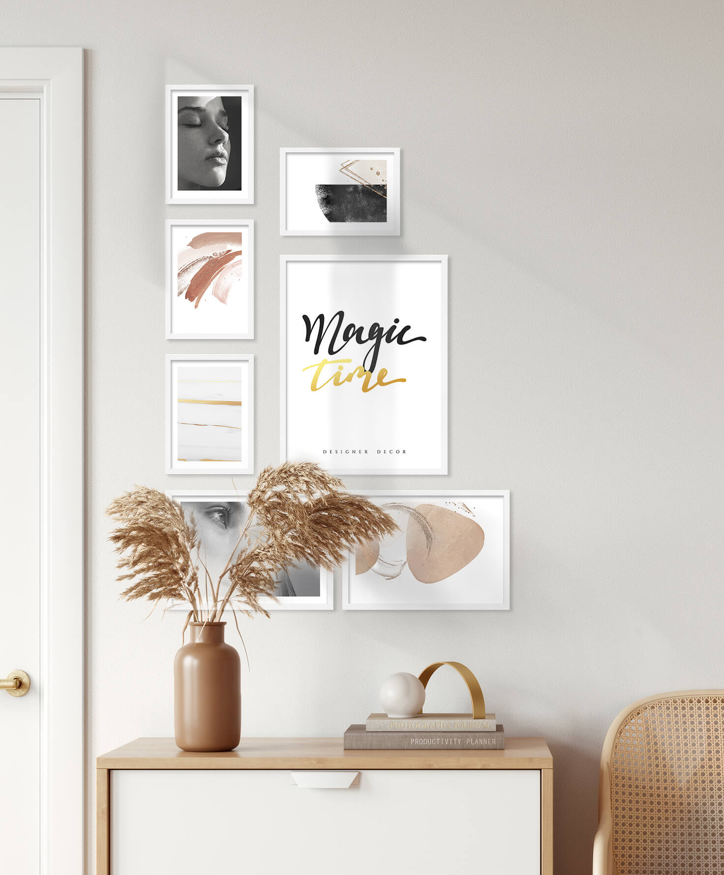 Nowoczesne galerie ścienne to prosty i efektowny sposób na aranżację każdego wnętrza. Dekoracyjny produkt pozwala stworzyć niebanalną kompozycję składającą się z 7 sztuk ramek. Wszystkie ramki zostały wykonane w 100% z drewna wysokiej jakości, dzięki czemu są trwałe i solidne.