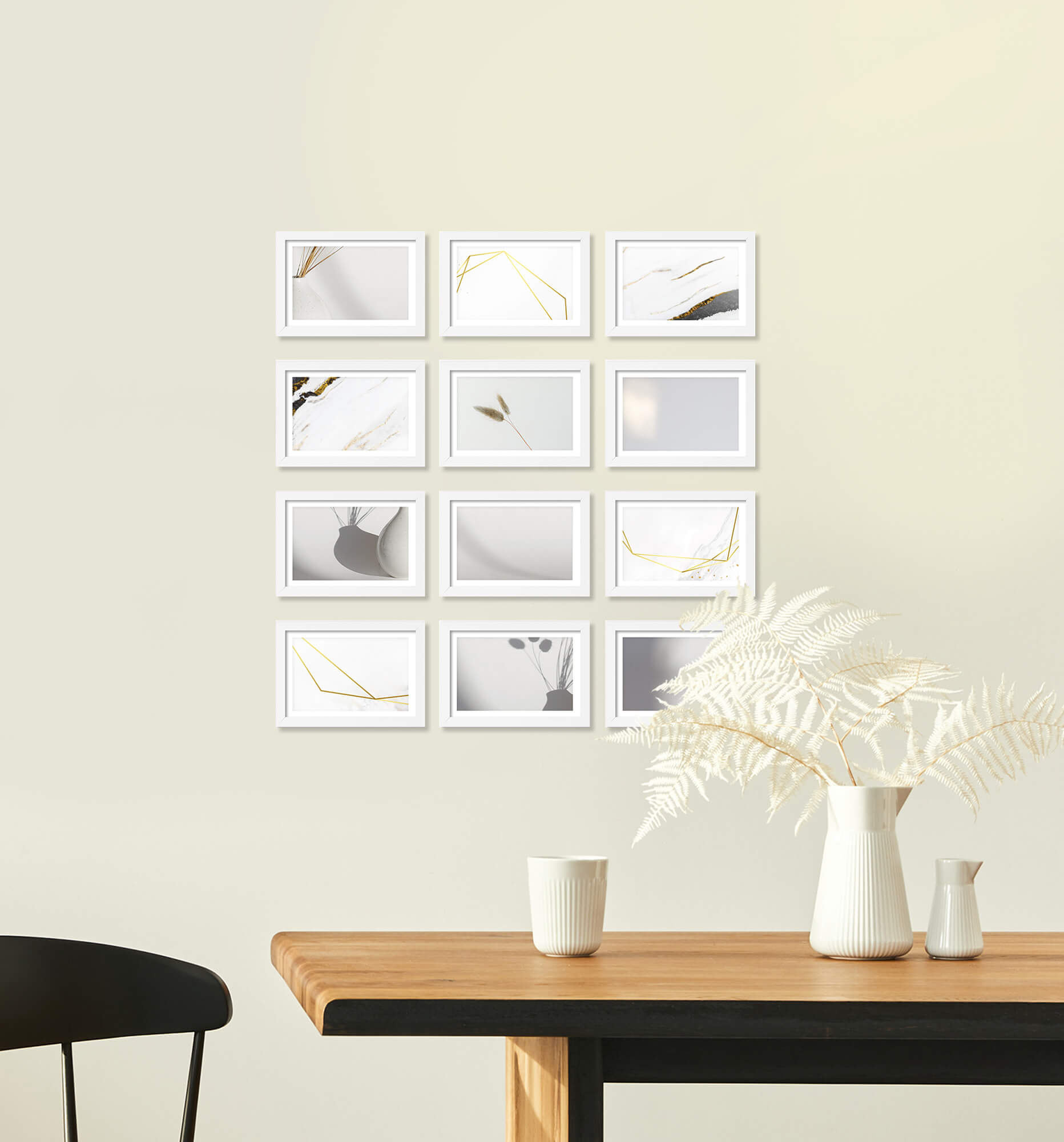 Nowoczesne galerie ścienne to prosty i efektowny sposób na aranżację każdego wnętrza. Dekoracyjny produkt pozwala stworzyć niebanalną kompozycję składającą się z 12 sztuk ramek. Wszystkie ramki zostały wykonane w 100% z drewna wysokiej jakości, dzięki czemu są trwałe i solidne.