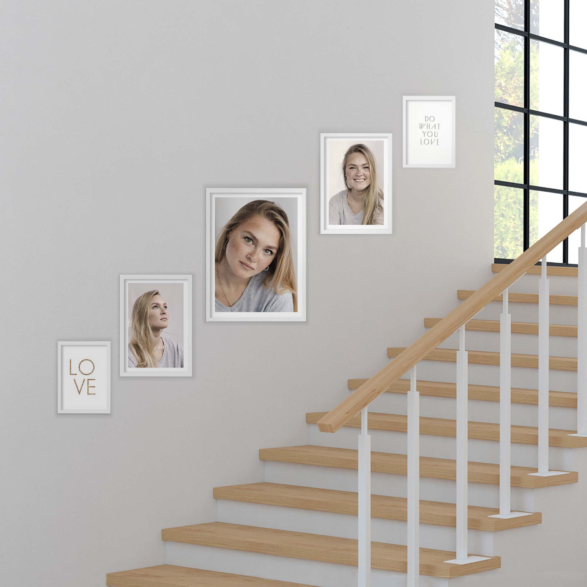 Nowoczesne galerie ścienne to prosty i efektowny sposób na aranżację ściany przy schodach. Dekoracyjny produkt pozwala stworzyć niebanalną kompozycję składającą się z 5 sztuk ramek. Wszystkie ramki zostały wykonane w 100% z drewna wysokiej jakości, dzięki czemu są trwałe i solidne.