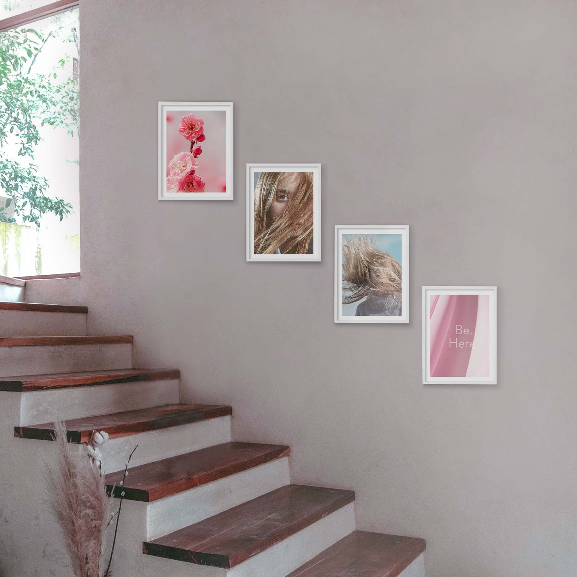 Nowoczesne galerie ścienne to prosty i efektowny sposób na aranżację ściany przy schodach. Dekoracyjny produkt pozwala stworzyć niebanalną kompozycję składającą się z 4 sztuk ramek. Wszystkie ramki zostały wykonane w 100% z drewna wysokiej jakości, dzięki czemu są trwałe i solidne.