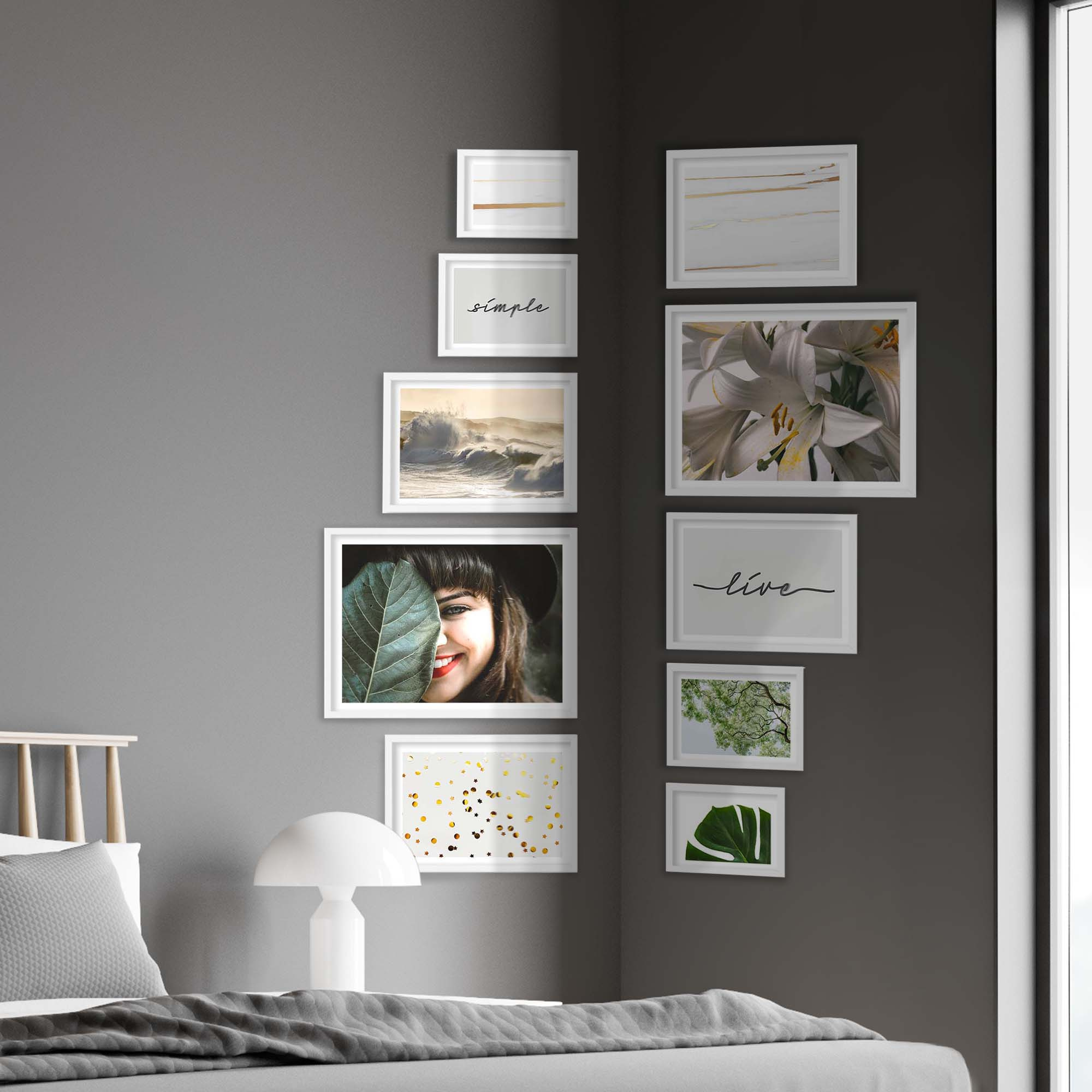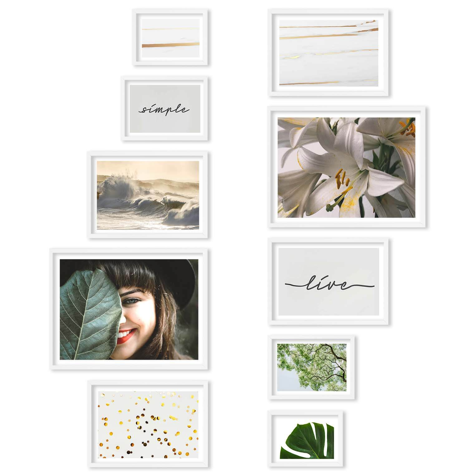 Nowoczesne galerie ścienne to prosty i efektowny sposób na aranżację każdego wnętrza. Dekoracyjny produkt pozwala stworzyć niebanalną kompozycję składającą się z 10 sztuk ramek. Wszystkie ramki zostały wykonane w 100% z drewna wysokiej jakości, dzięki czemu są trwałe i solidne.