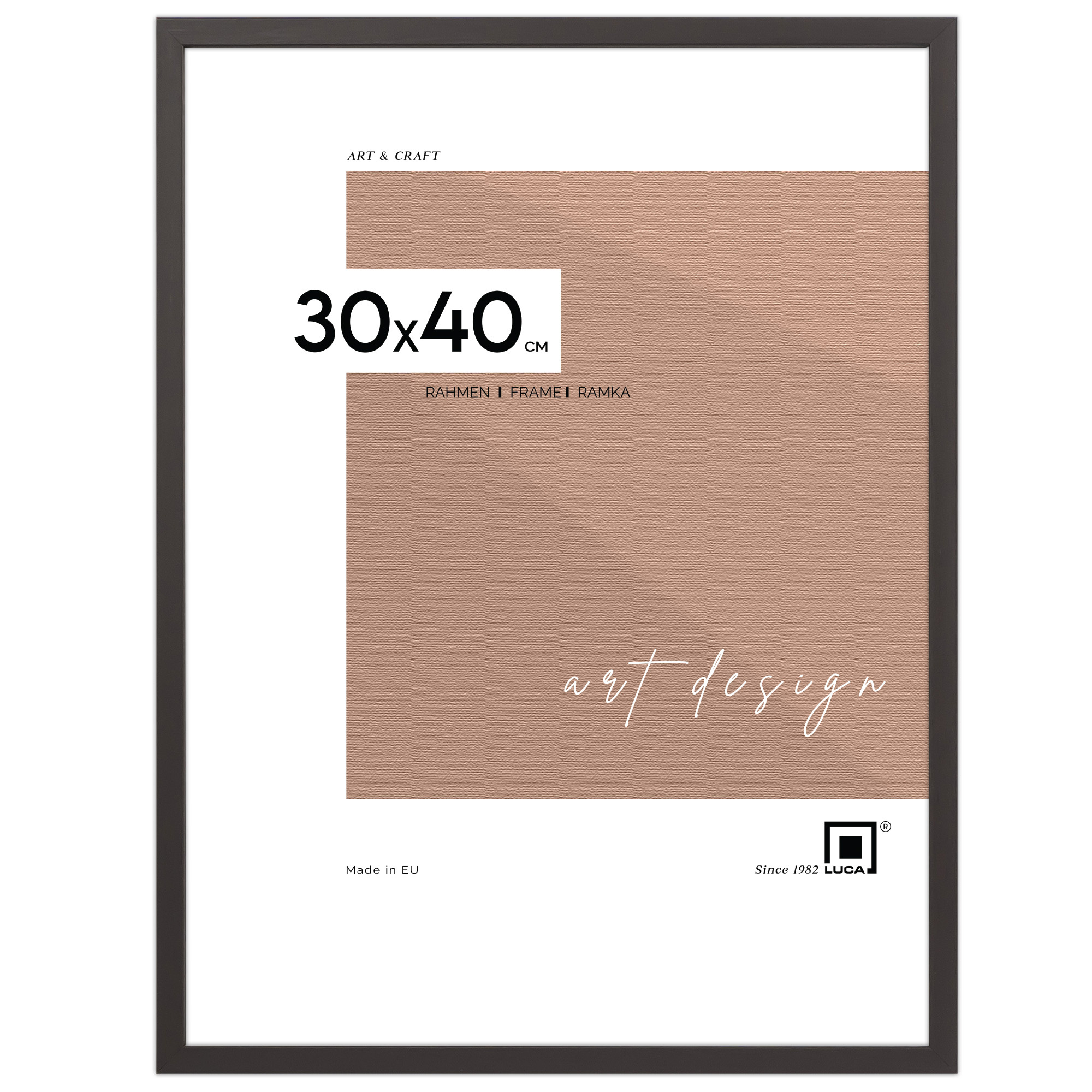 Galeria GF0003 w kolorze ciemnej czekolady została stworzona z ramek PINIA 02, które charakteryzują się wysoką jakością i trwałością. Przy tworzeniu ich użyto wysokiej jakości drewna i trwałych zszywek "V-nail" przy łączeniach. Profil ramek to 11 mm szerokości i 14 mm wysokości. Miękkie blaszki mocujące tył ramki zapewniają możliwość wielokrotnego otwierania.