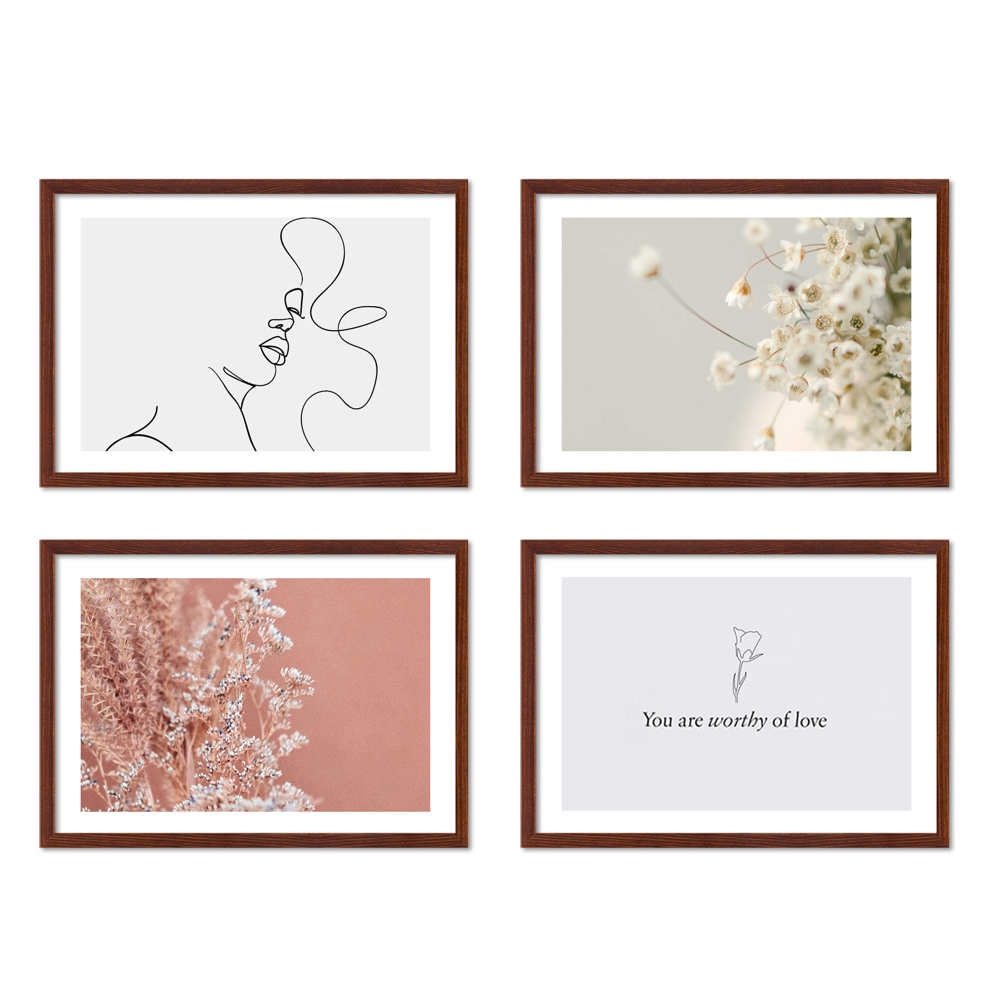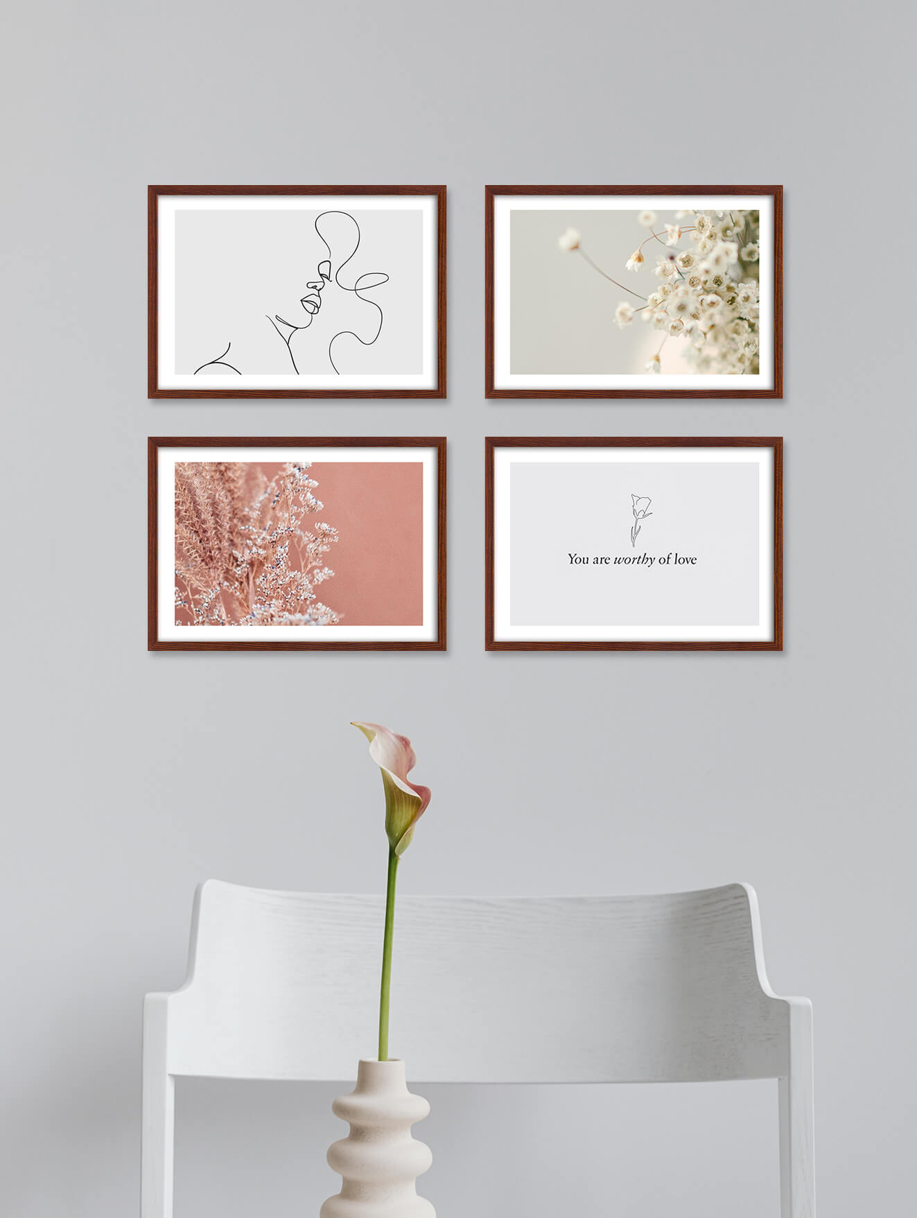 Nowoczesne galerie ścienne to prosty i efektowny sposób na aranżację każdego wnętrza. Dekoracyjny produkt pozwala stworzyć niebanalną kompozycję składającą się z 4 sztuk ramek. Wszystkie ramki zostały wykonane w 100% z drewna wysokiej jakości, dzięki czemu są trwałe i solidne.