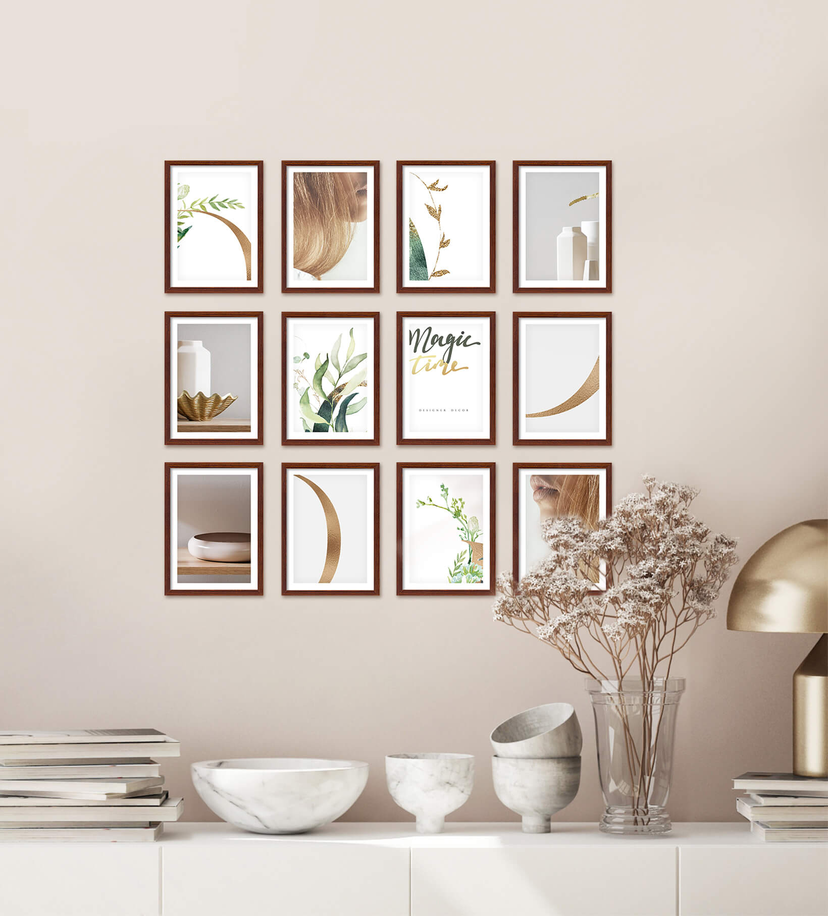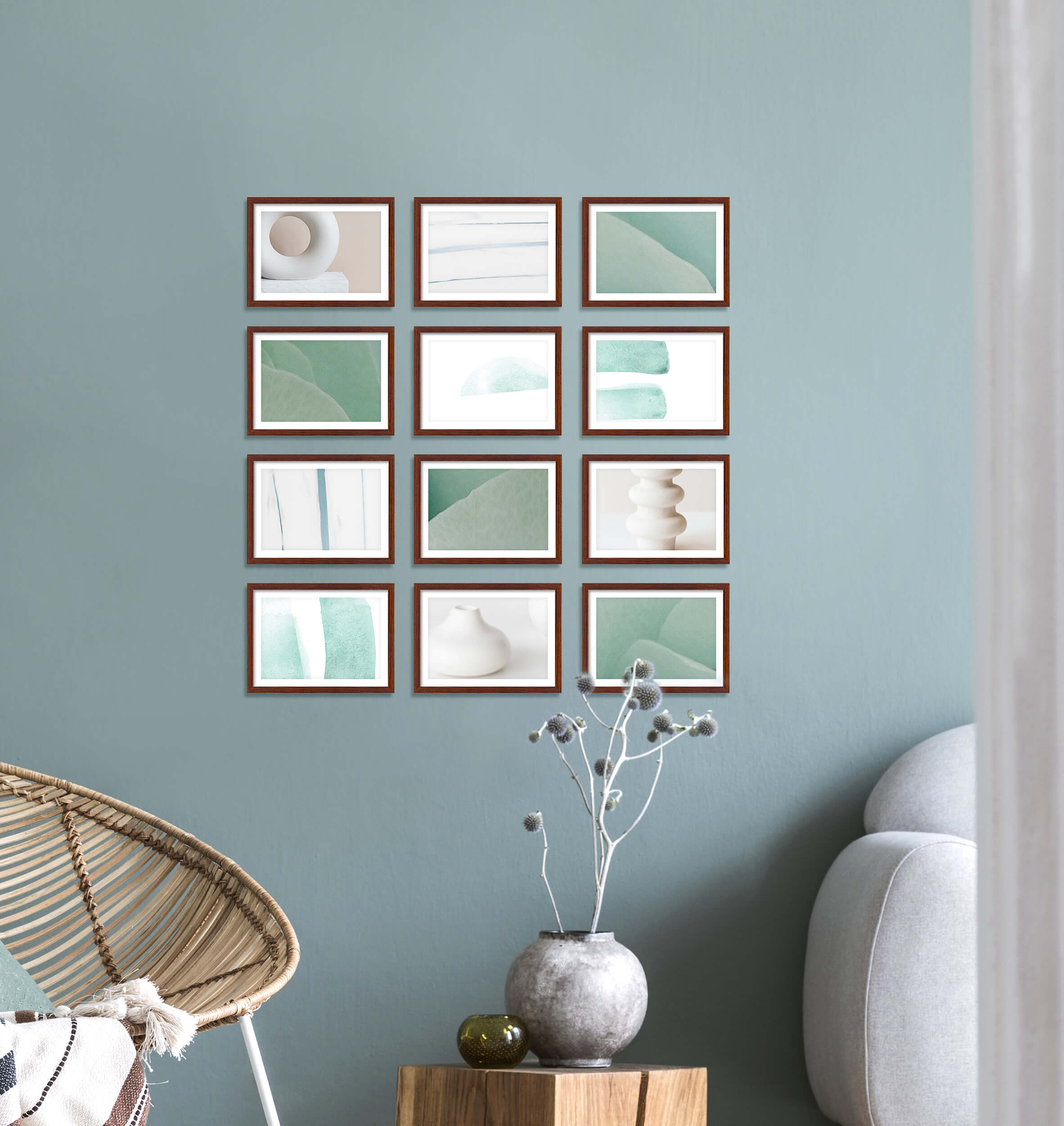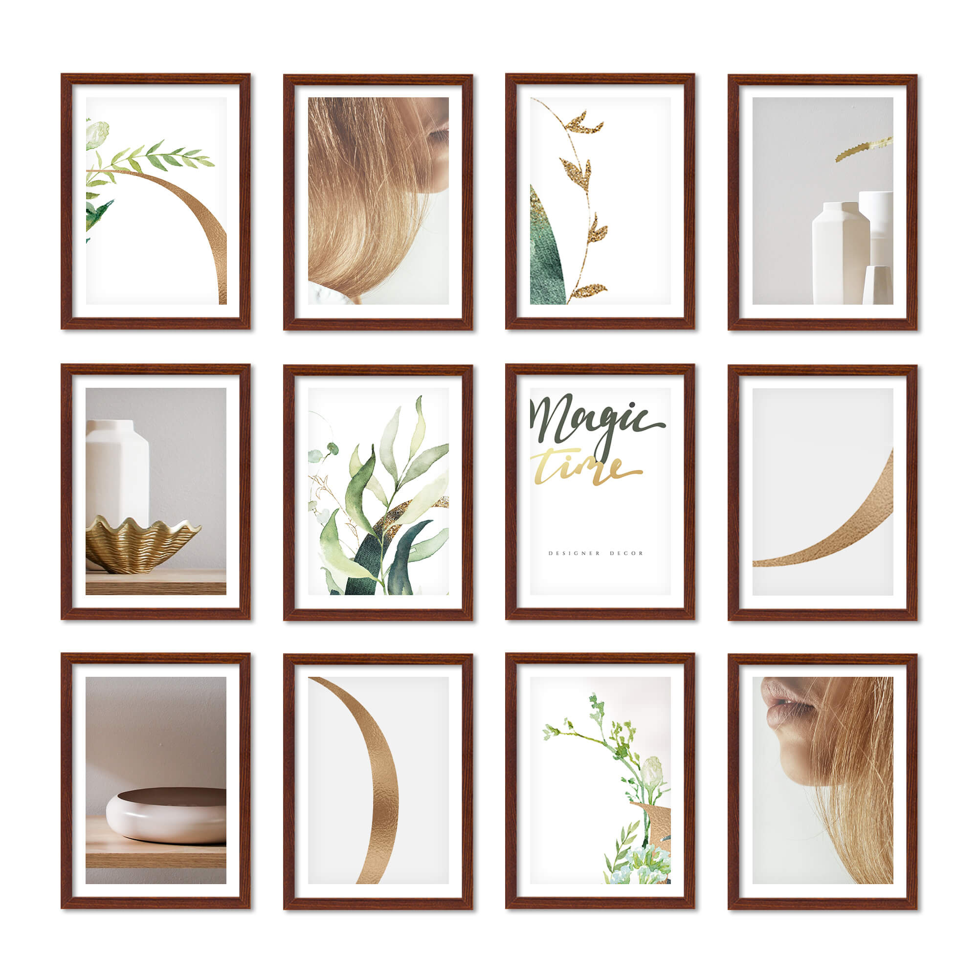 Nowoczesne galerie ścienne to prosty i efektowny sposób na aranżację każdego wnętrza. Dekoracyjny produkt pozwala stworzyć niebanalną kompozycję składającą się z 12 sztuk ramek. Wszystkie ramki zostały wykonane w 100% z drewna wysokiej jakości, dzięki czemu są trwałe i solidne.