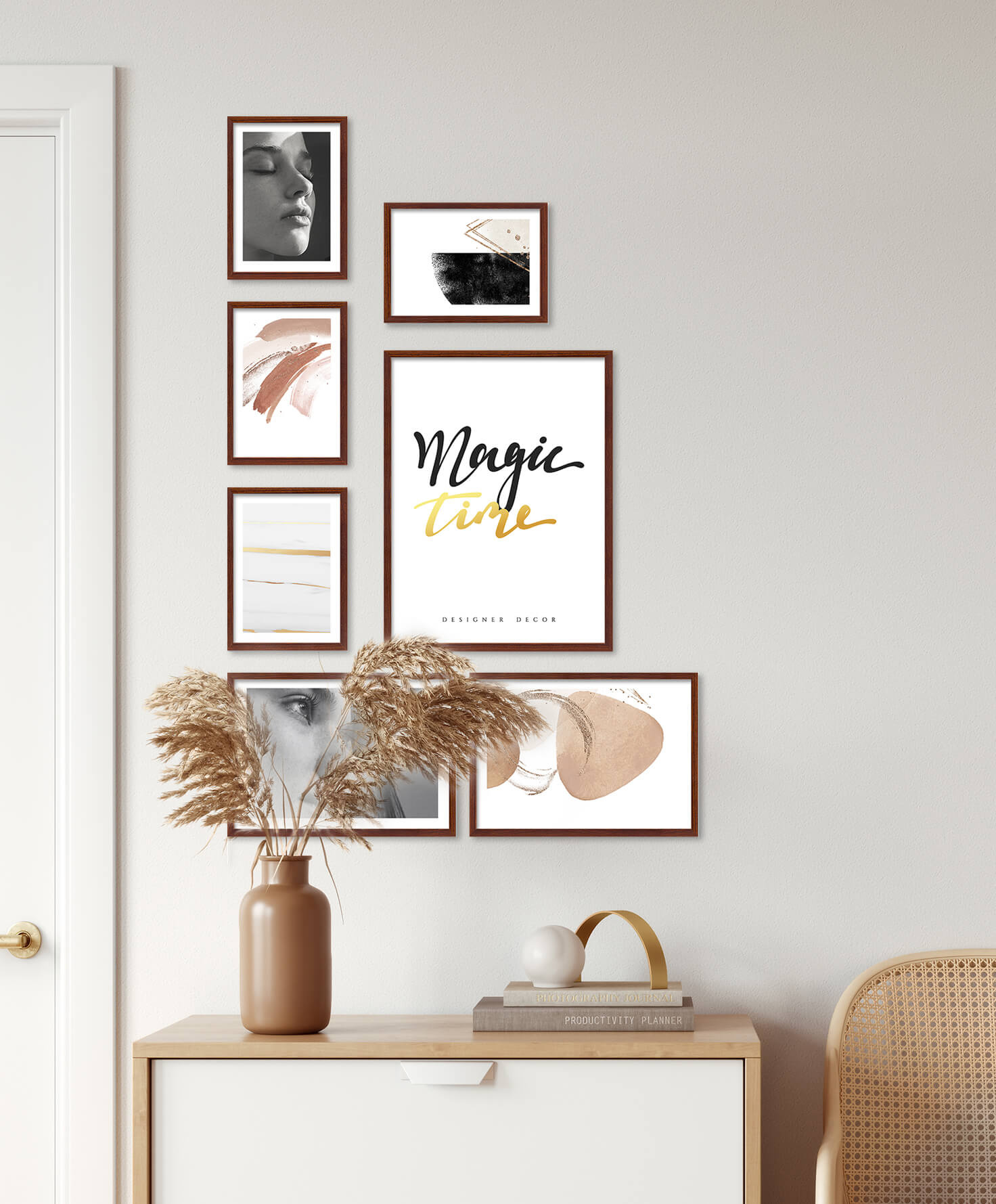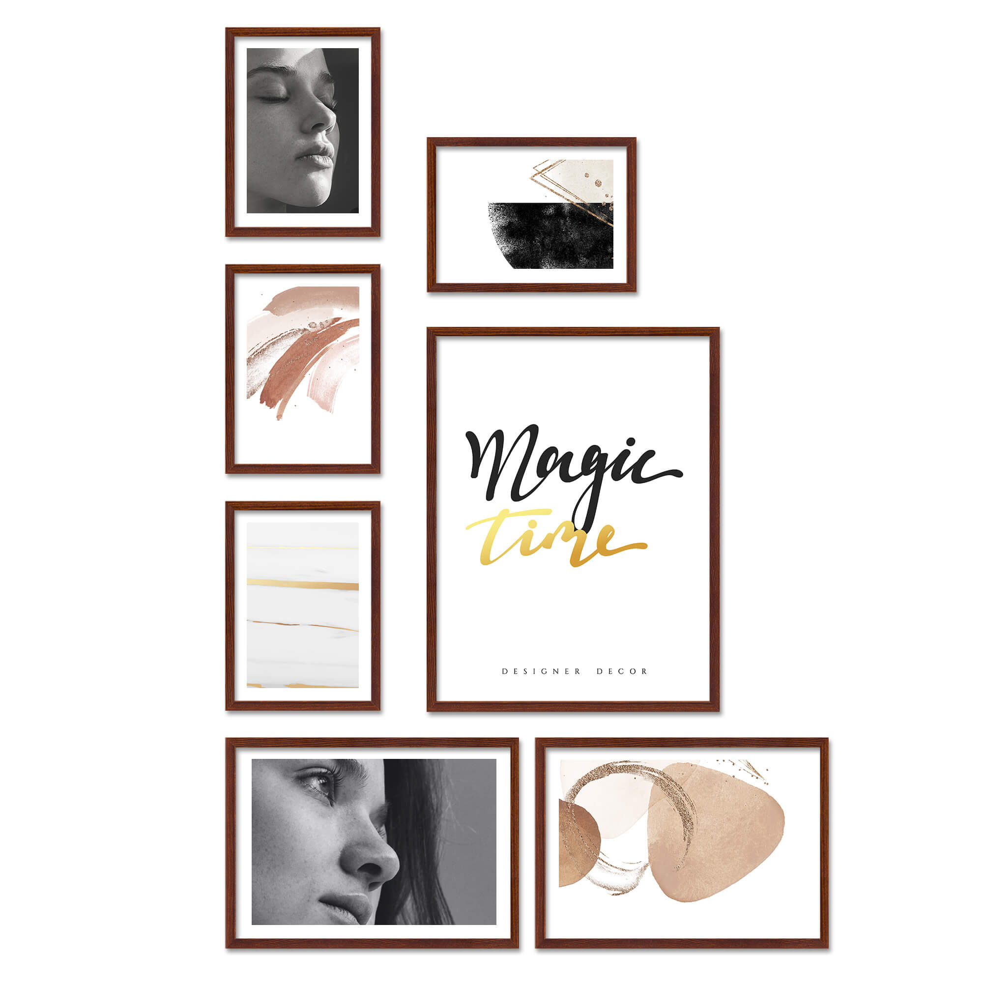 Nowoczesne galerie ścienne to prosty i efektowny sposób na aranżację każdego wnętrza. Dekoracyjny produkt pozwala stworzyć niebanalną kompozycję składającą się z 7 sztuk ramek. Wszystkie ramki zostały wykonane w 100% z drewna wysokiej jakości, dzięki czemu są trwałe i solidne.