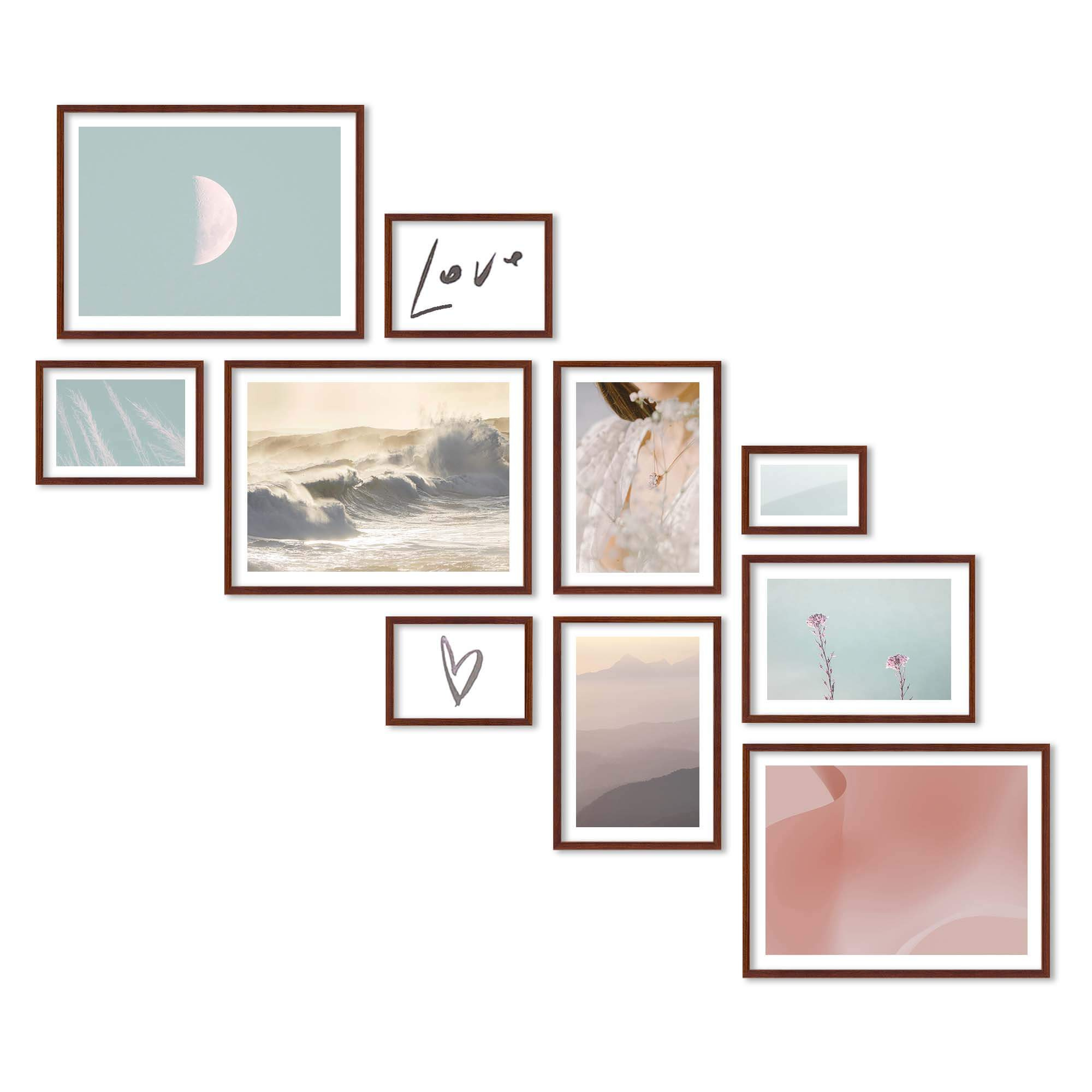 Nowoczesne galerie ścienne to prosty i efektowny sposób na aranżację ściany przy schodach. Dekoracyjny produkt pozwala stworzyć niebanalną kompozycję składającą się z 10 sztuk ramek. Wszystkie ramki zostały wykonane w 100% z drewna wysokiej jakości, dzięki czemu są trwałe i solidne.