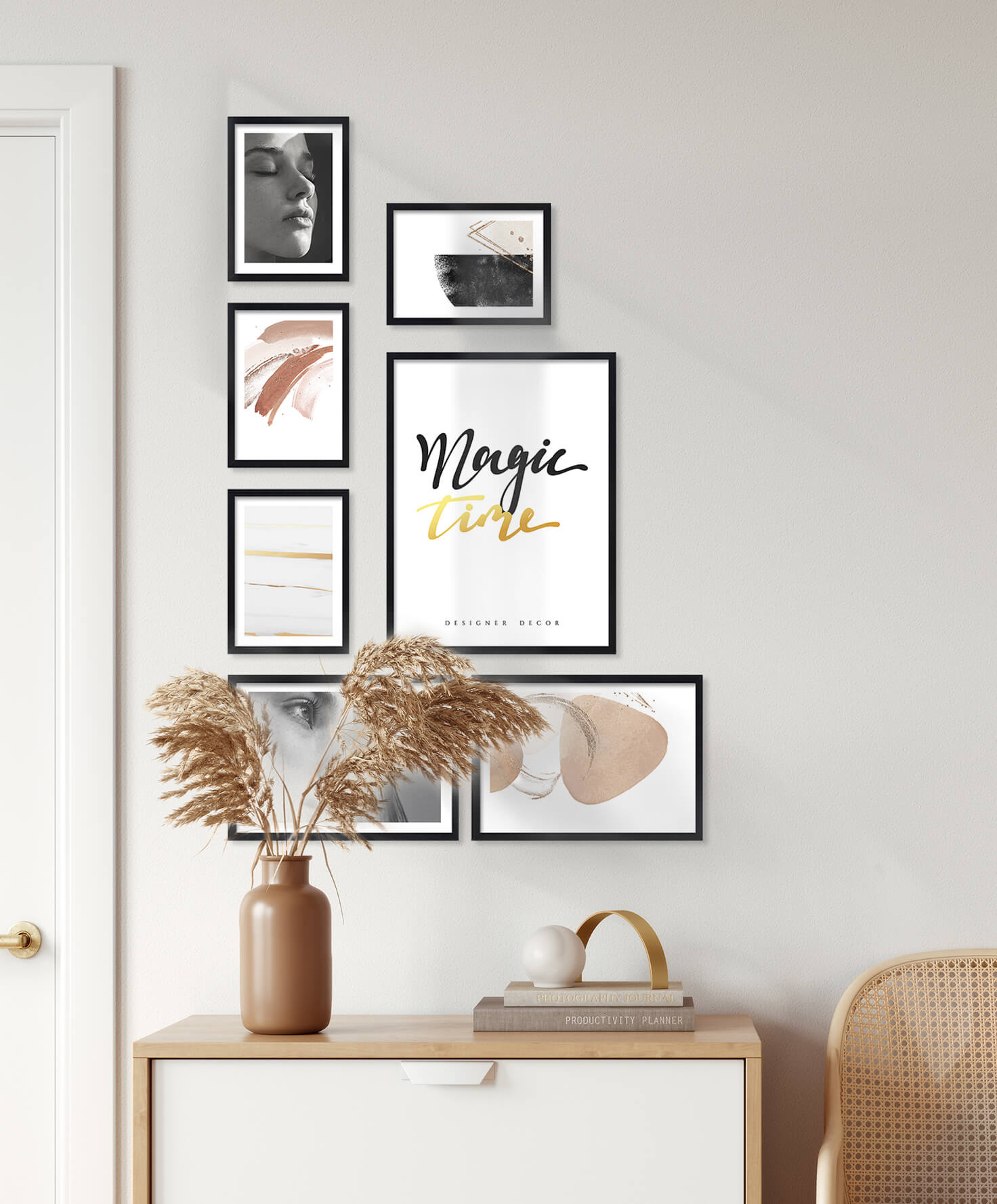 Nowoczesne galerie ścienne to prosty i efektowny sposób na aranżację każdego wnętrza. Dekoracyjny produkt pozwala stworzyć niebanalną kompozycję składającą się z 7 sztuk ramek. Wszystkie ramki zostały wykonane w 100% z drewna wysokiej jakości, dzięki czemu są trwałe i solidne.