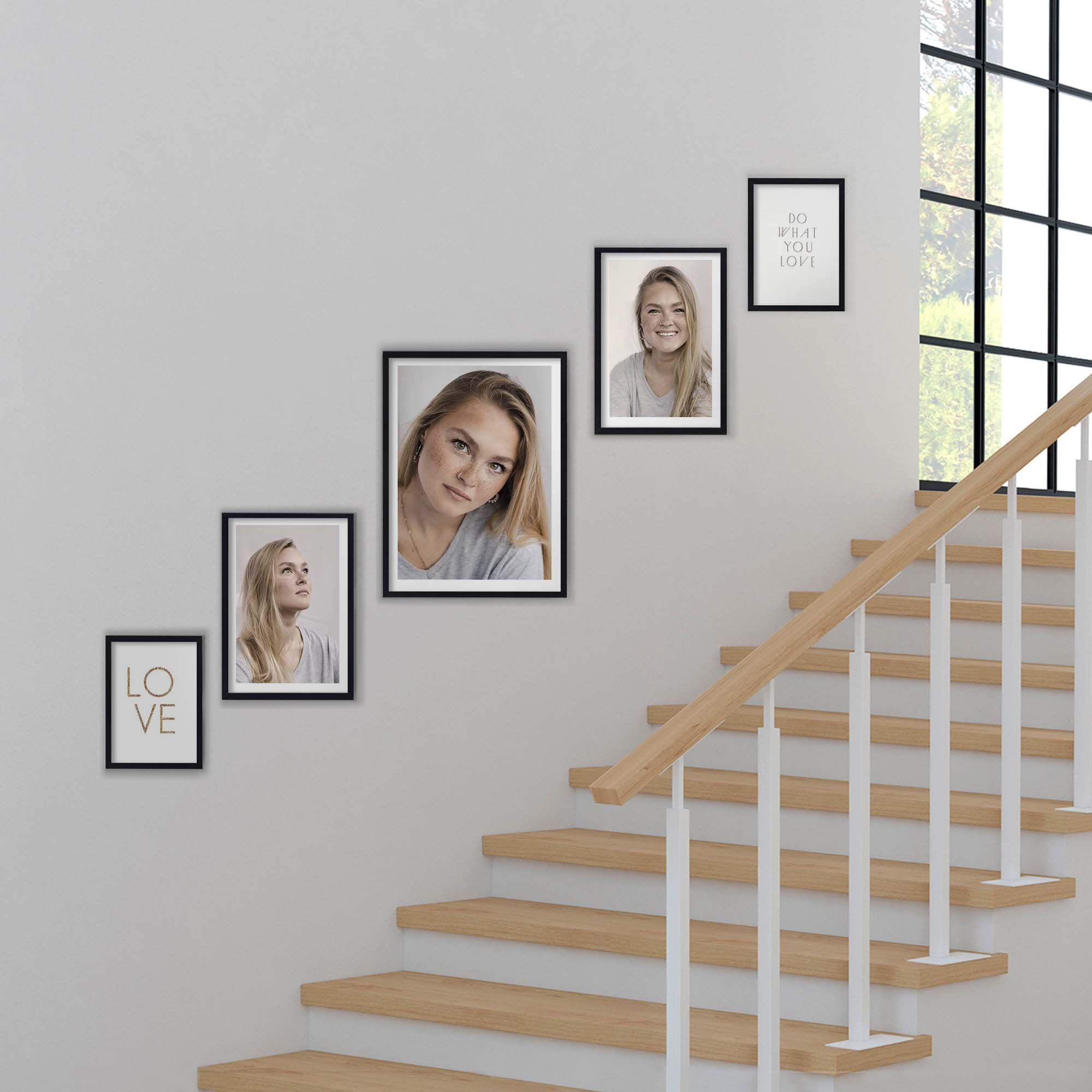 Zawieszenie kilku ramek na jednej ścianie tworzy ciekawą koncepcję, która stanowić będzie rewelacyjną ozdobę przestrzeni nad schodami. Proste ramki na zdjęcia to idealny pomysł, aby zapamiętać wyjątkowe chwile na długi czas.