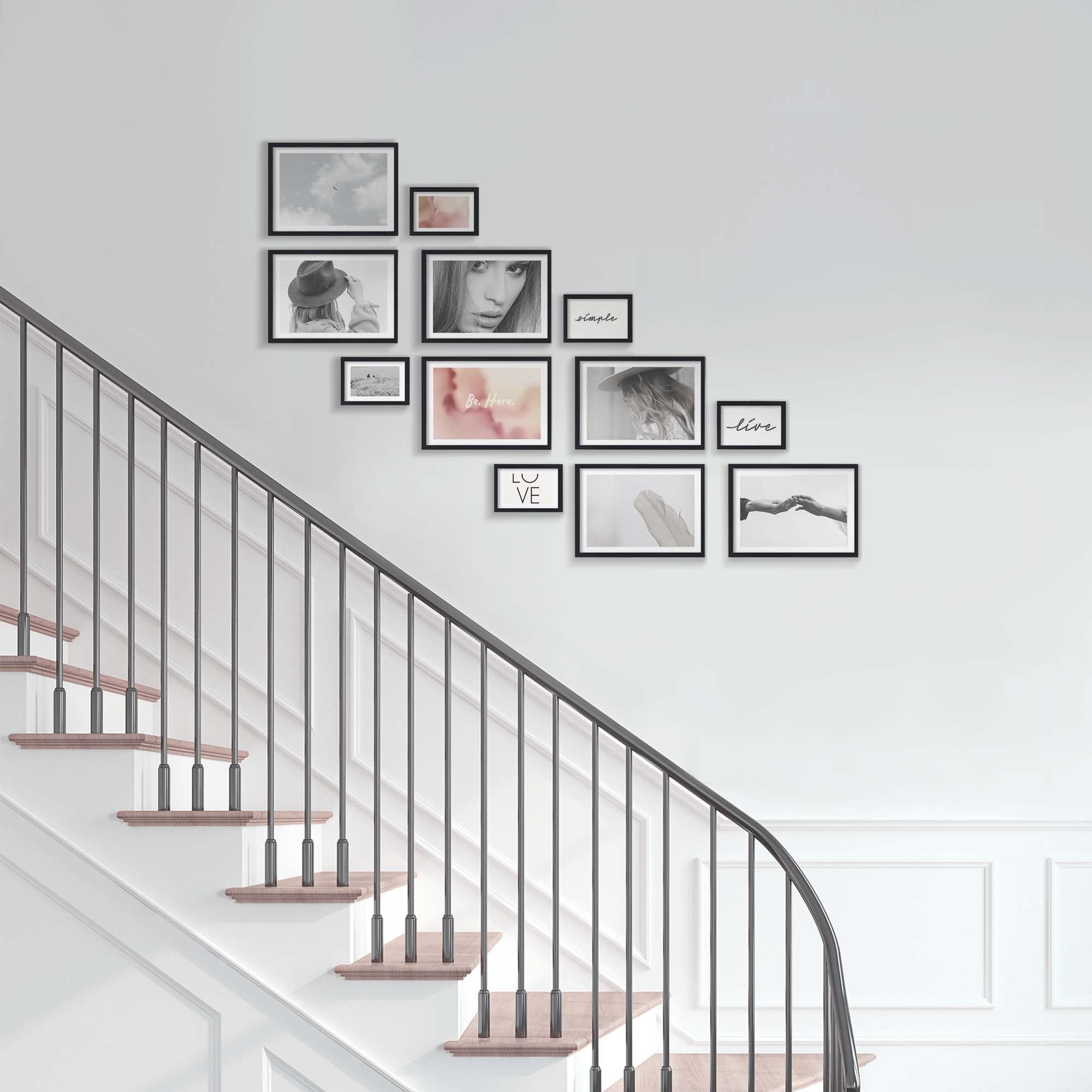 Nowoczesne galerie ścienne to prosty i efektowny sposób na aranżację ściany przy schodach. Dekoracyjny produkt pozwala stworzyć niebanalną kompozycję składającą się z 12 sztuk ramek. Wszystkie ramki zostały wykonane w 100% z drewna wysokiej jakości, dzięki czemu są trwałe i solidne.