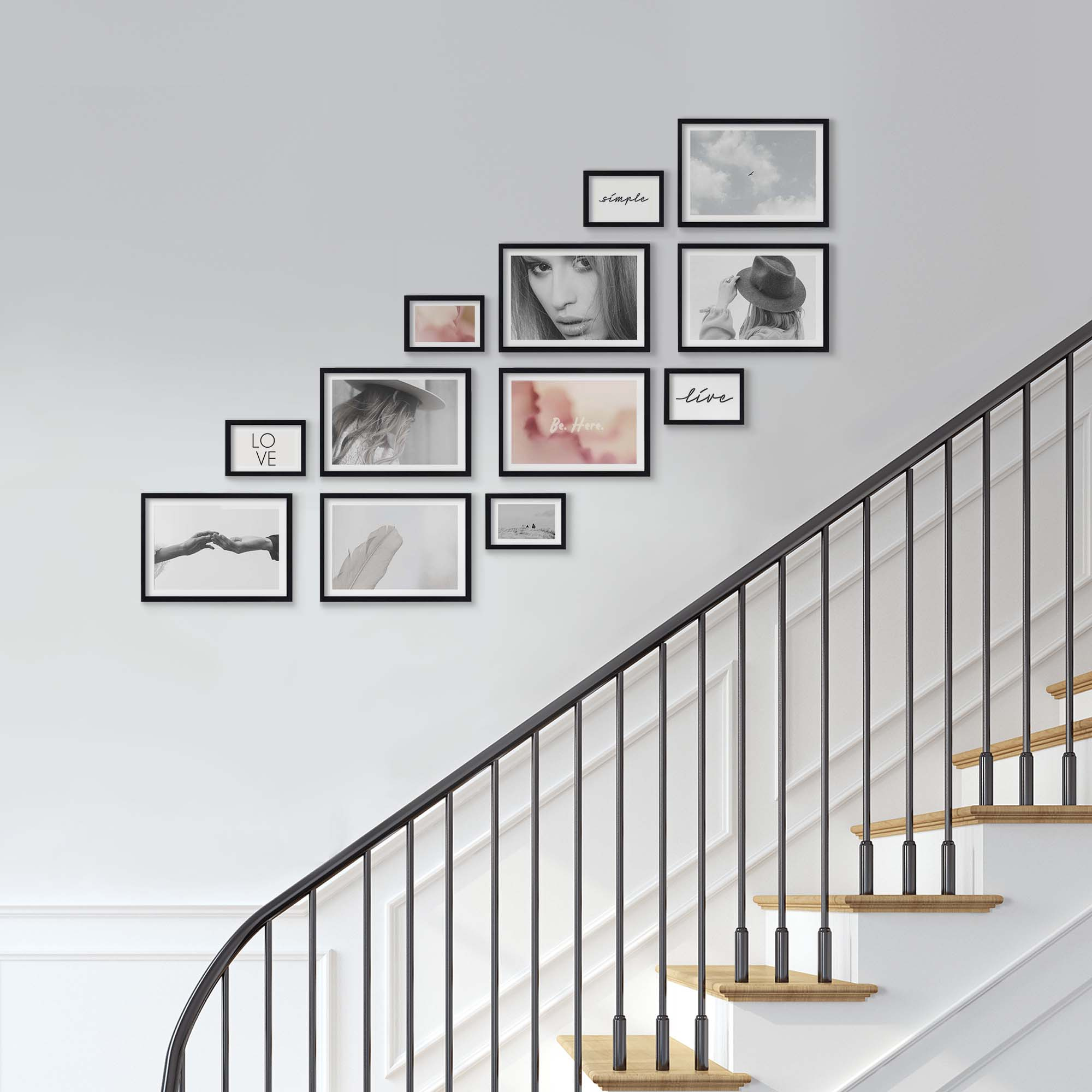 Nowoczesne galerie ścienne to prosty i efektowny sposób na aranżację ściany przy schodach. Dekoracyjny produkt pozwala stworzyć niebanalną kompozycję składającą się z 12 sztuk ramek. Wszystkie ramki zostały wykonane w 100% z drewna wysokiej jakości, dzięki czemu są trwałe i solidne.