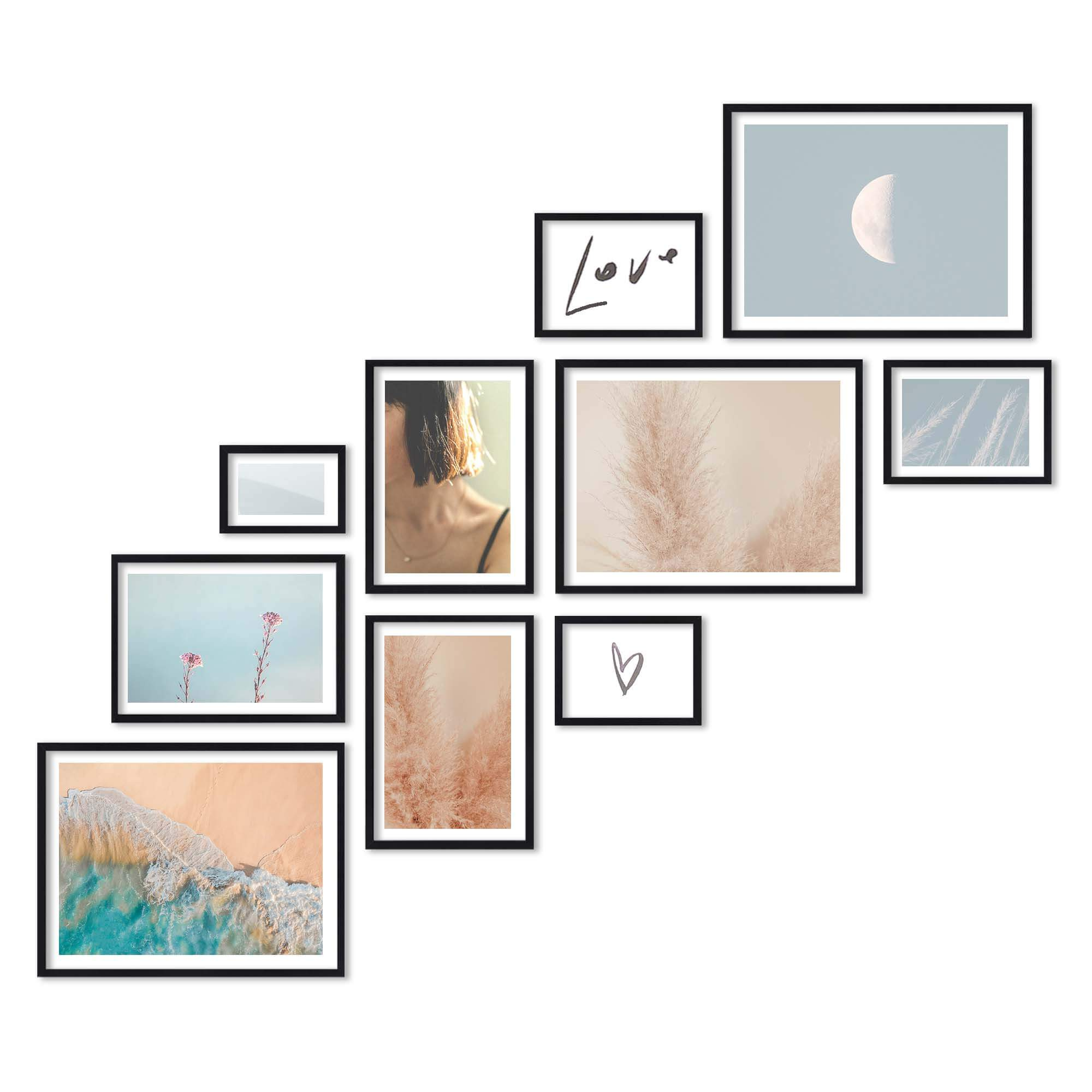 Nowoczesne galerie ścienne to prosty i efektowny sposób na aranżację ściany przy schodach. Dekoracyjny produkt pozwala stworzyć niebanalną kompozycję składającą się z 10 sztuk ramek. Wszystkie ramki zostały wykonane w 100% z drewna wysokiej jakości, dzięki czemu są trwałe i solidne.
