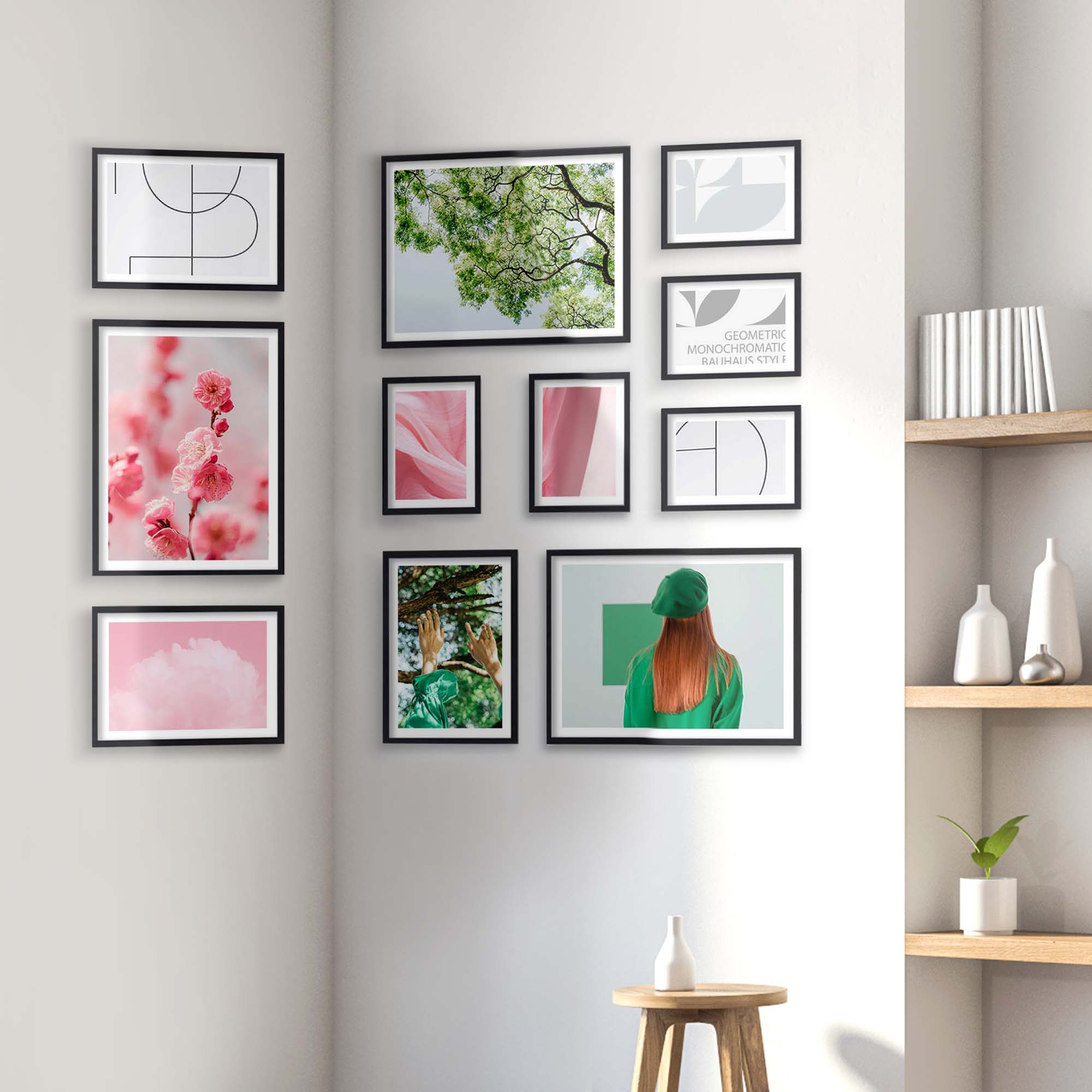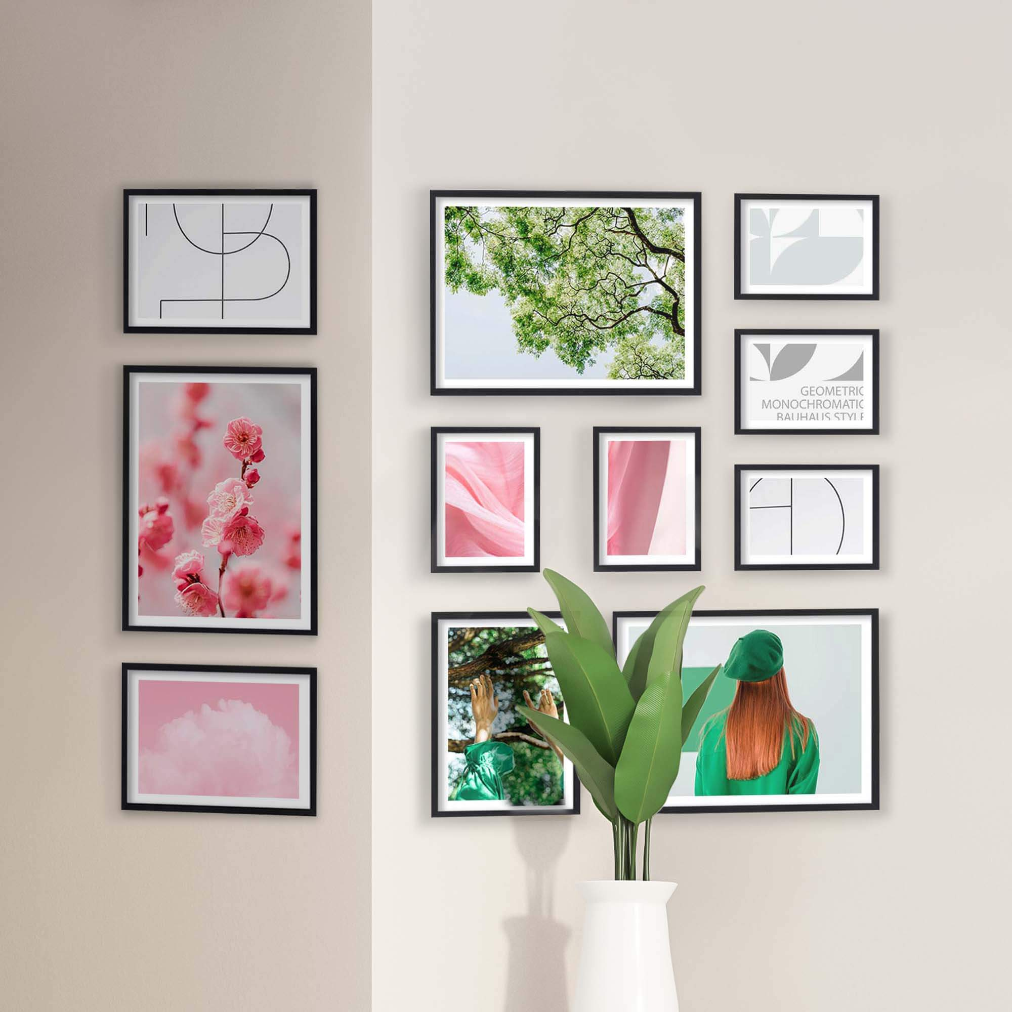 Nowoczesne galerie ścienne to prosty i efektowny sposób na aranżację każdego wnętrza. Dekoracyjny produkt pozwala stworzyć niebanalną kompozycję składającą się z 11 sztuk ramek. Wszystkie ramki zostały wykonane w 100% z drewna wysokiej jakości, dzięki czemu są trwałe i solidne.