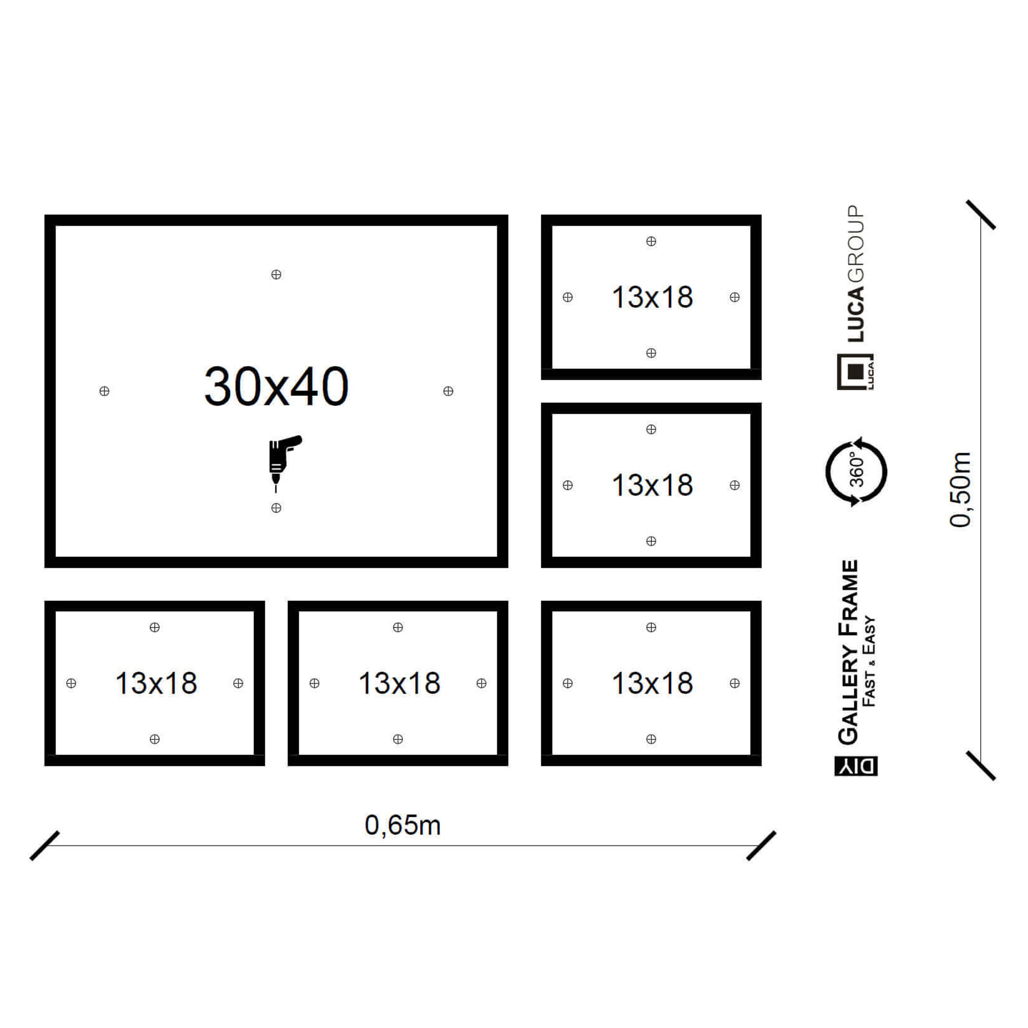 Prezentowane szablony galerii ściennych DIY Gallery FrameTM są własnością LUCA GROUP i podlegają ochronie prawnej. Kopiowanie, powielanie i rozpowszechnianie bez pisemnej zgody jest zabronione.