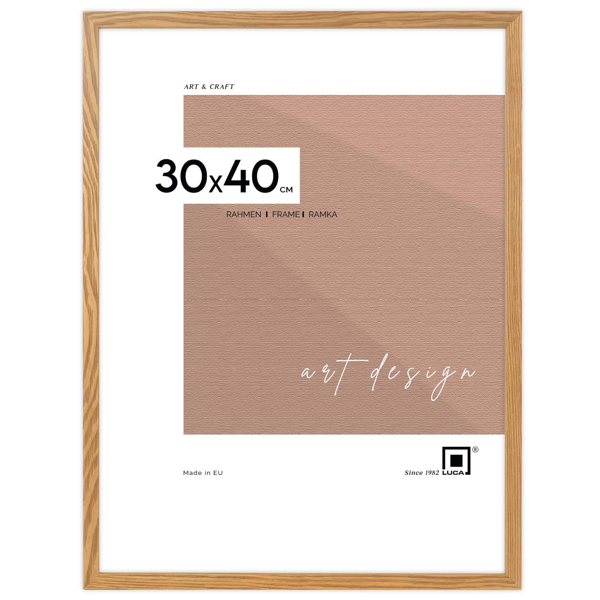 Galeria GF0003 w kolorze dębowym została stworzona z ramek PINIA 00, które charakteryzują się wysoką jakością i trwałością. Przy tworzeniu ich użyto wysokiej jakości drewna i trwałych zszywek "V-nail" przy łączeniach. Profil ramek to 11 mm szerokości i 14 mm wysokości. Miękkie blaszki mocujące tył ramki zapewniają możliwość wielokrotnego otwierania.