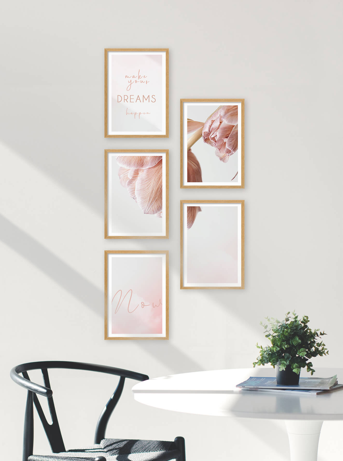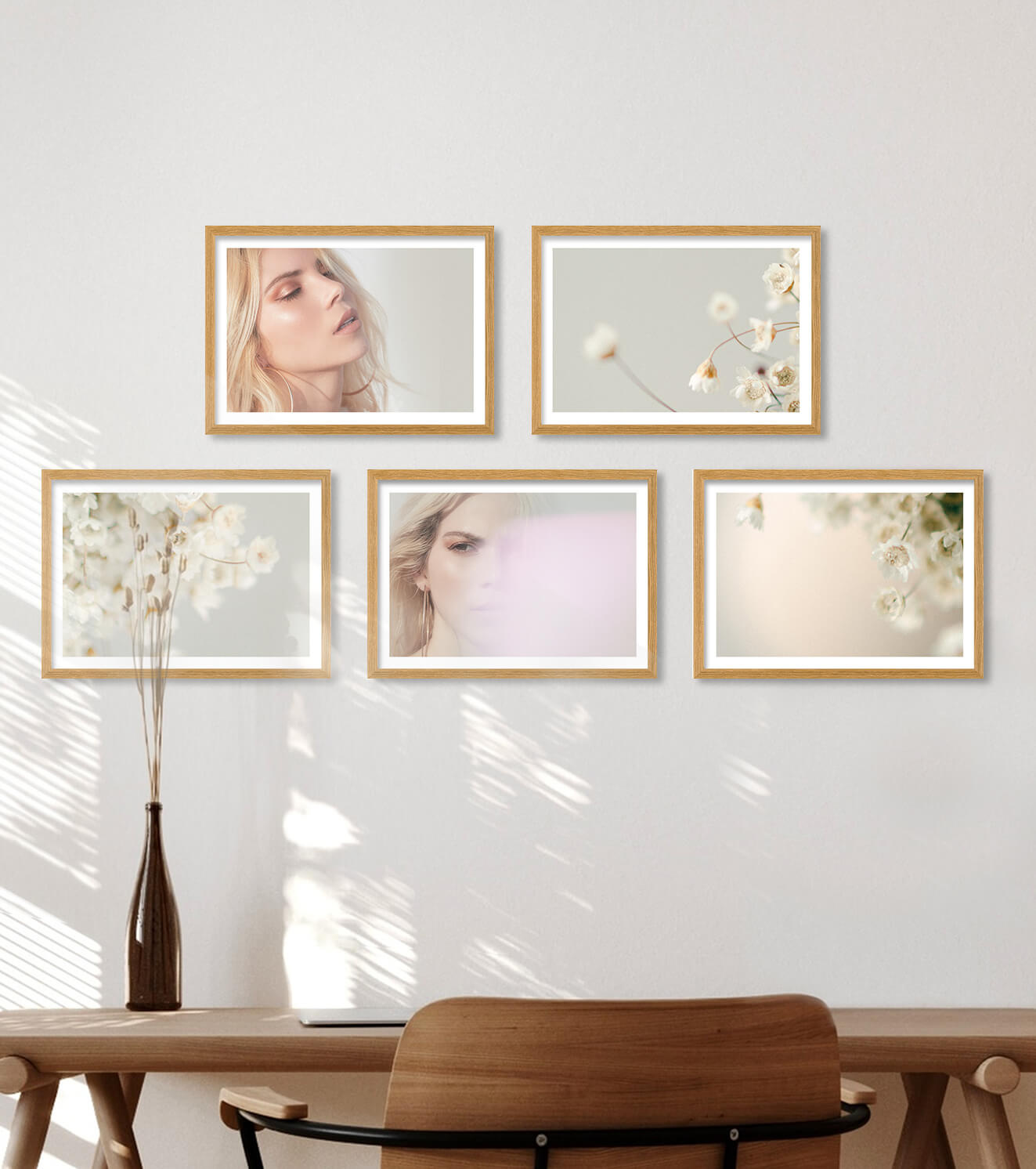 Nowoczesne galerie ścienne to prosty i efektowny sposób na aranżację każdego wnętrza. Dekoracyjny produkt pozwala stworzyć niebanalną kompozycję składającą się z 5 sztuk ramek. Wszystkie ramki zostały wykonane w 100% z drewna wysokiej jakości, dzięki czemu są trwałe i solidne.
